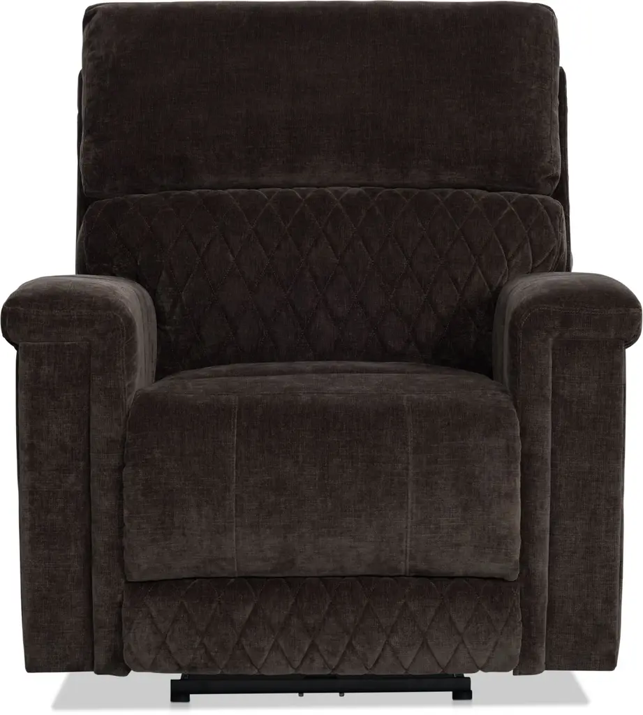 Decked out with tech magic—the Maxie Dual-Power Recliner takes lounging to the next level. With soft fabric, sink-in seating and stylish diamond stitch detailing.