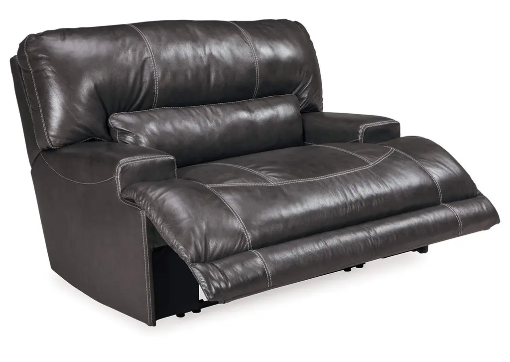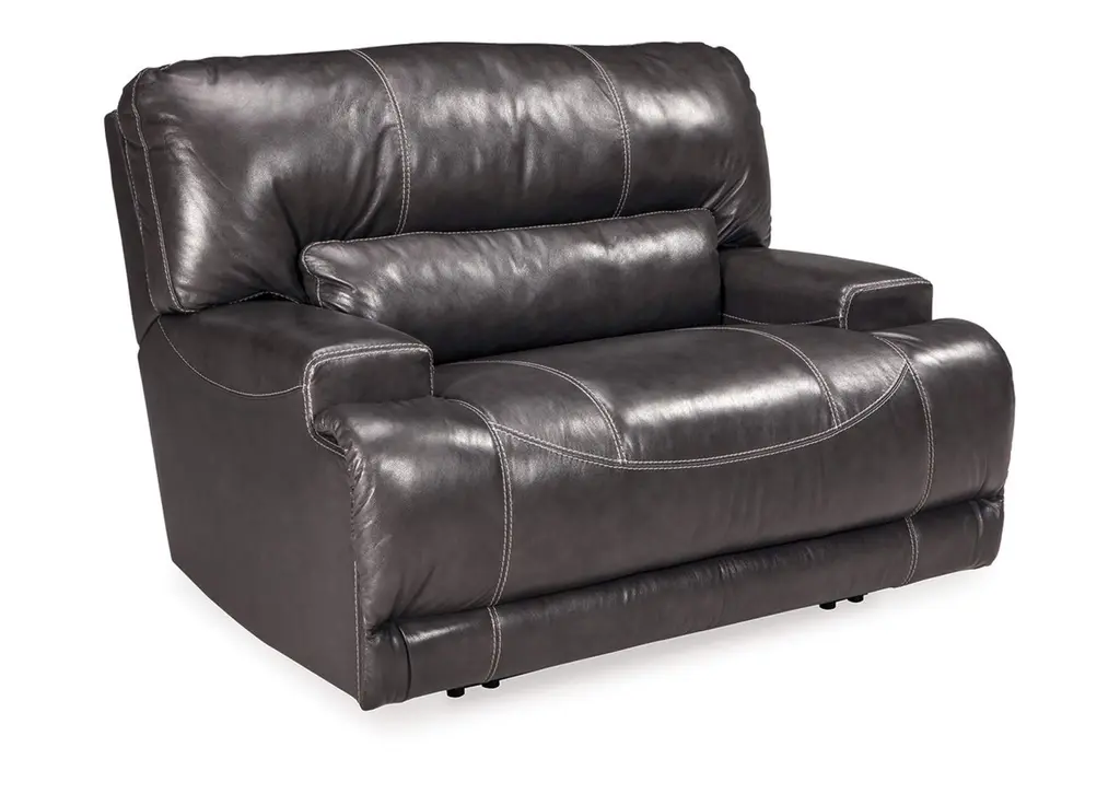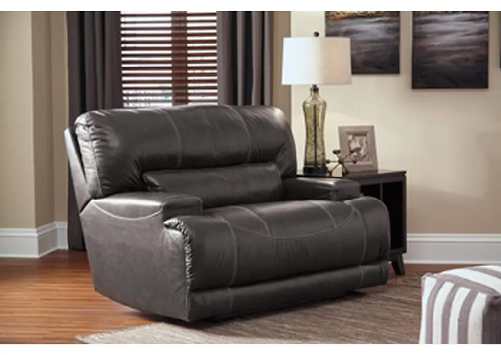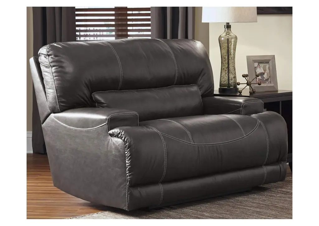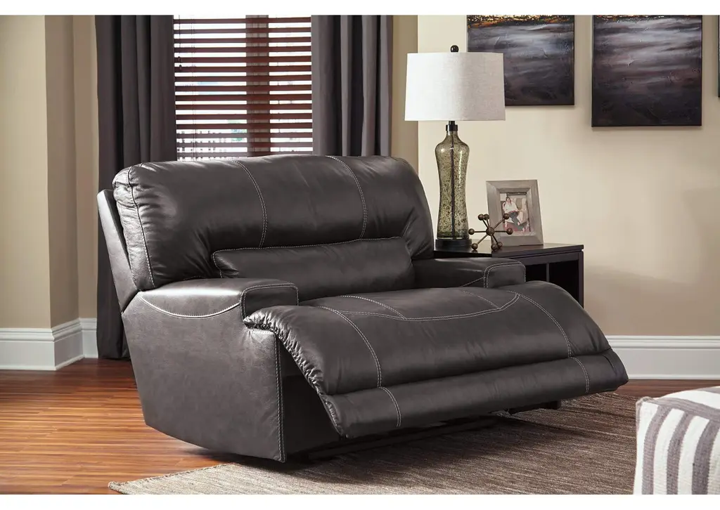Sink into the supple McCaskill recliner and prepare to be swept off your feet—literally. Its extra-wide seat and plush cushioning are divinely comfortable. It's wrapped in decadently soft combination leather and faux leather upholstery for a luxurious experience, saving you money without sacrificing style. Prominent stitching, linear track arms and a goes-with-anything gray hue add stylish touches. Weight 156.090 lbs. (70.24kgs.)