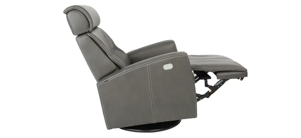 The Milan Large Recliner features an adjustable height and angle headrest, makes the seating experience ergonomic and gives your lower back correct support. Available in all our leathers and select fabrics,Milan is a swivel/glider/rocker recliner available in motorized and manual versions.