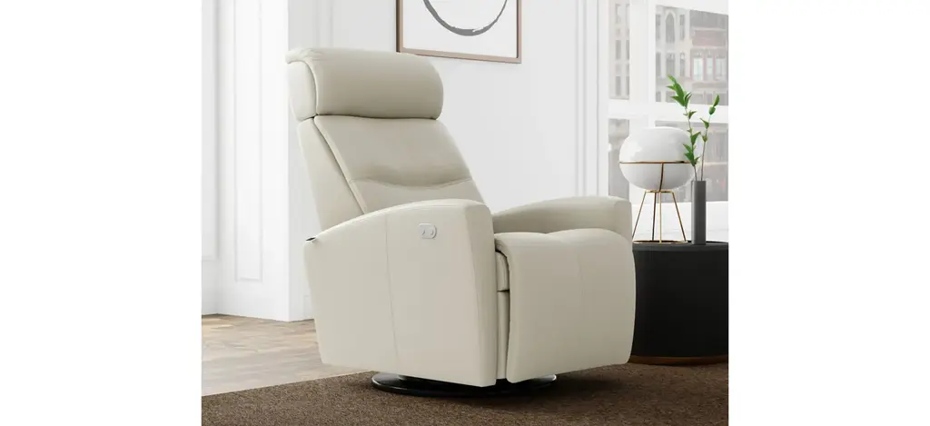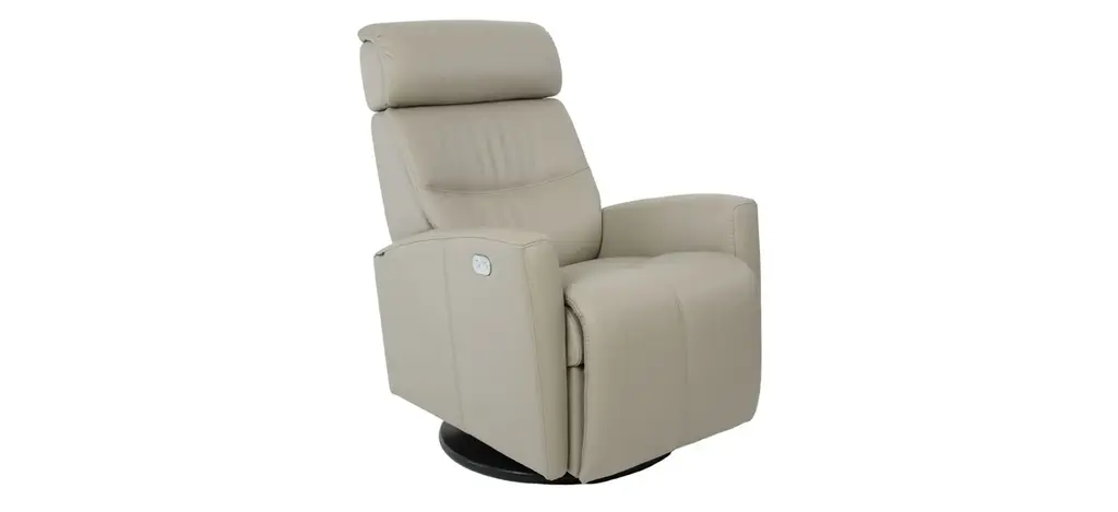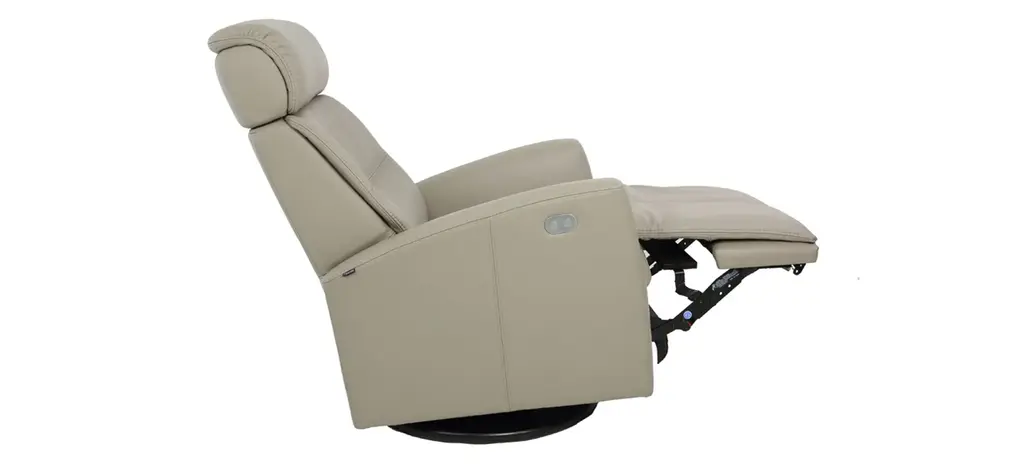 The Milan Small Recliner features an adjustable height and angle headrest, makes the seating experience ergonomic and gives your lower back correct support. Available in all our leathers and select fabrics,Milan is a swivel/glider/rocker recliner available in motorized and manual versions.