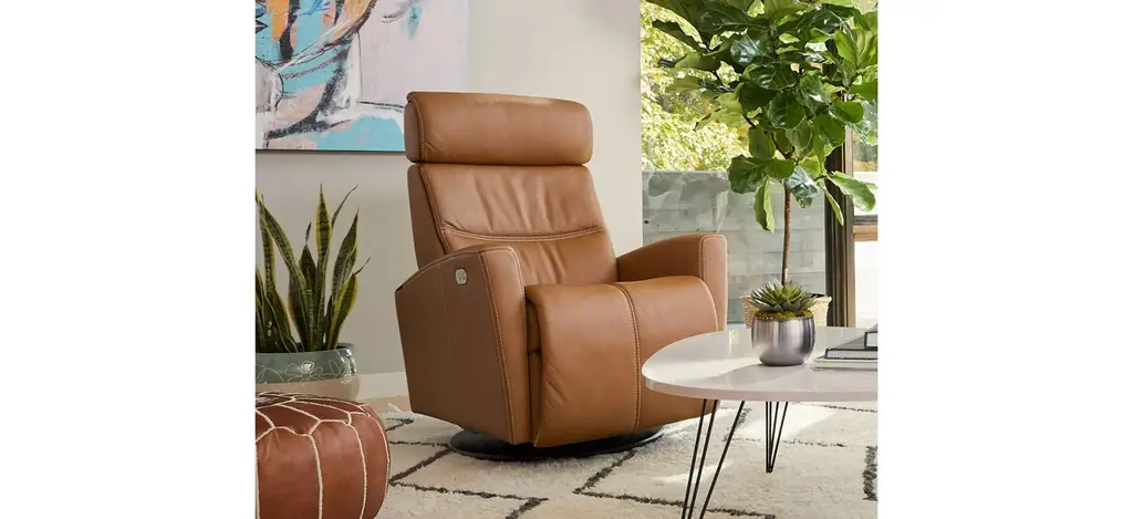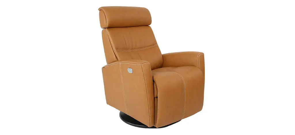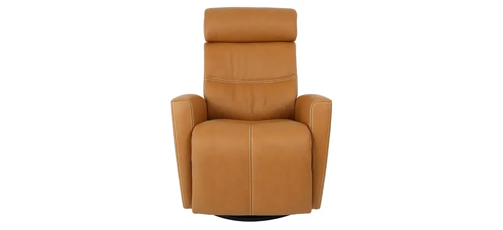 The Milan Small Recliner features an adjustable height and angle headrest, makes the seating experience ergonomic and gives your lower back correct support. Available in all our leathers and select fabrics,Milan is a swivel/glider/rocker recliner available in motorized and manual versions.