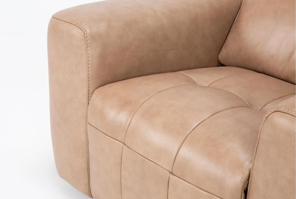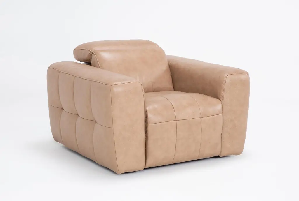 The Miles Brown Orange Faux Leather Power Recliner with Power Headrest offers the perfect blend of comfort and style for your living room. Designed in a modern club style, this recliner features a soft sand color that complements any neutral décor. The adjustable headrest and arms provide personalized support for ultimate relaxation.