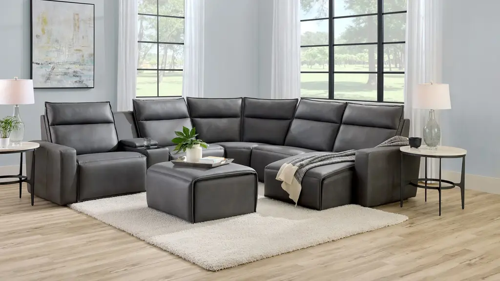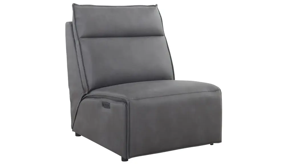 Ready to kick back, relax, and be fully immersed in comfort? The ModularTwo armless power recliner w/ power headrest is the sectional component you've been looking for. A celebration of contemporary style, the ModularTwo is upholstered in soft and stain-resistant microfiber faux leather. Track arms and a tailored pub back with flange-edged cushions bring a casual yet elevated aesthetic to your home. Designed with comfort and flexibility at the forefront, ModularTwo components are upholstered on all sides so you can rearrange and add to your personalized configuration as you please. Choose a preconfigured design or combine individual components to create modular seating that's perfect for your space and style.
