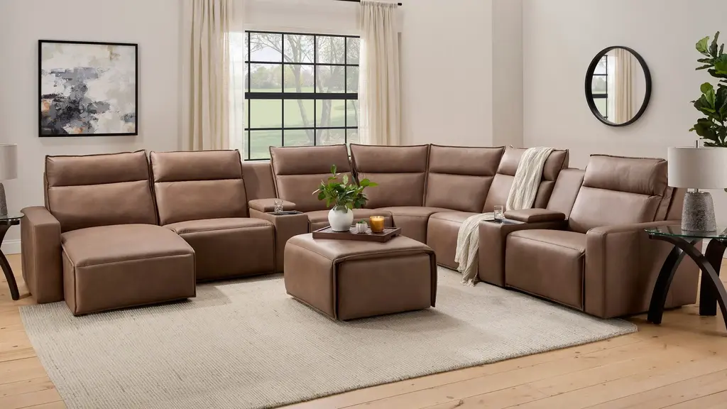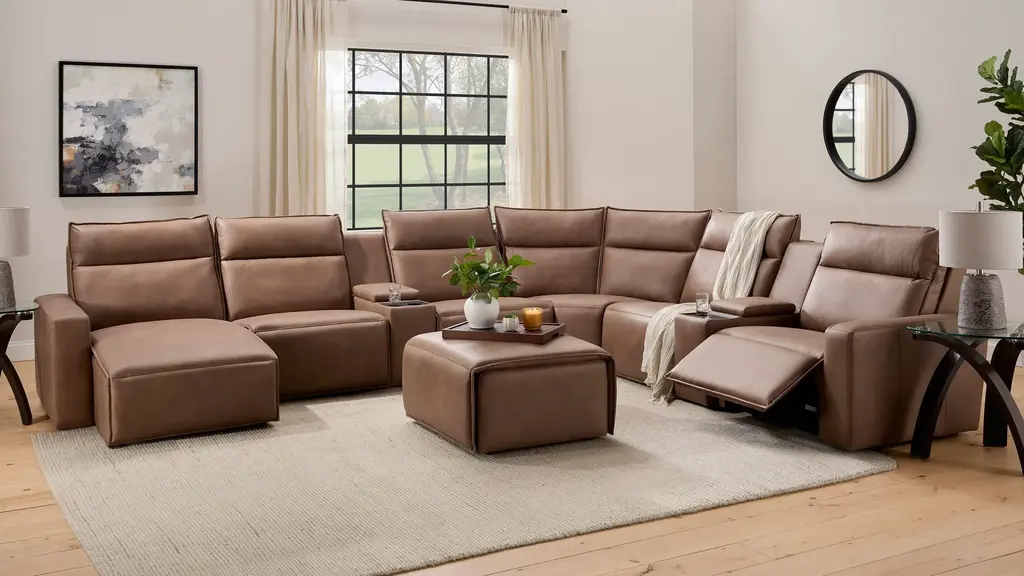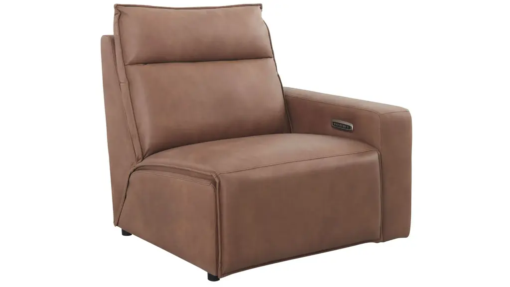 Ready to kick back, relax, and be fully immersed in comfort? The ModularTwo right arm facing power recliner w/ power headrest is the sectional component you've been looking for. A celebration of contemporary style, the ModularTwo is upholstered in soft and stain-resistant microfiber faux leather. Track arms and a tailored pub back with flange-edged cushions bring a casual yet elevated aesthetic to your home. Designed with comfort and flexibility at the forefront, ModularTwo components are upholstered on all sides so you can rearrange and add to your personalized configuration as you please. Choose a preconfigured design or combine individual components to create modular seating that's perfect for your space and style.