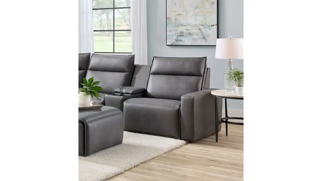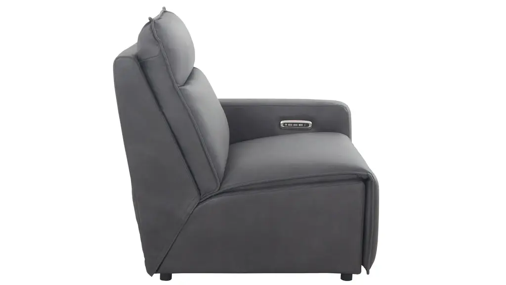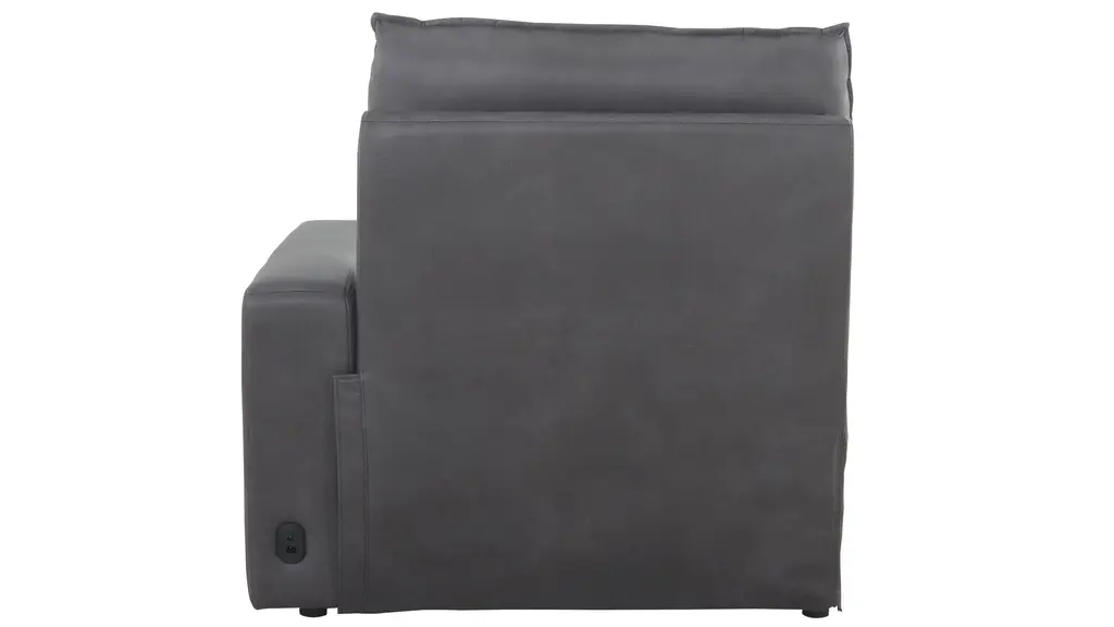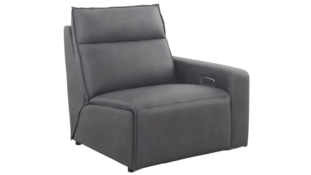 Ready to kick back, relax, and be fully immersed in comfort? The ModularTwo right arm facing power recliner w/ power headrest is the sectional component you've been looking for. A celebration of contemporary style, the ModularTwo is upholstered in soft and stain-resistant microfiber faux leather. Track arms and a tailored pub back with flange-edged cushions bring a casual yet elevated aesthetic to your home. Designed with comfort and flexibility at the forefront, ModularTwo components are upholstered on all sides so you can rearrange and add to your personalized configuration as you please. Choose a preconfigured design or combine individual components to create modular seating that's perfect for your space and style.