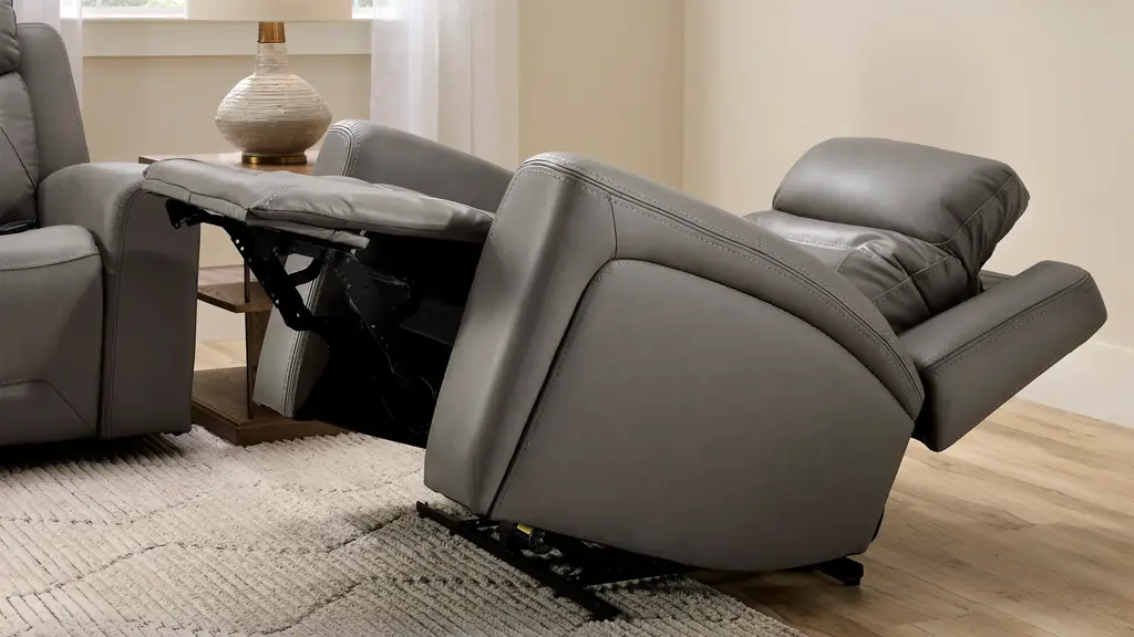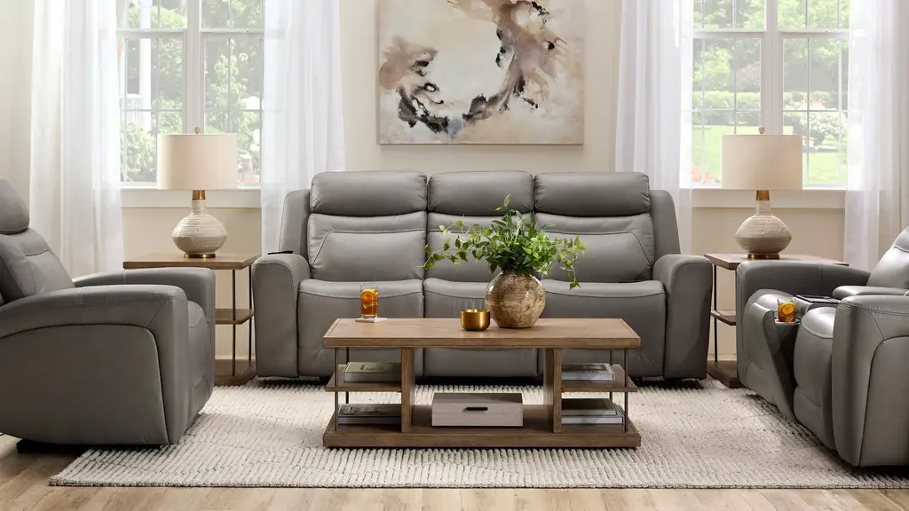 Level up your downtime with the versatility and casual elegance of the Morgenthal power recliner. In sumptuous smooth leather and a beautiful caramel color, this recliner features terrific power functions. Lift your feet. Support your neck and shoulders. Activate heat and massage. This recliner's got what you need right now.