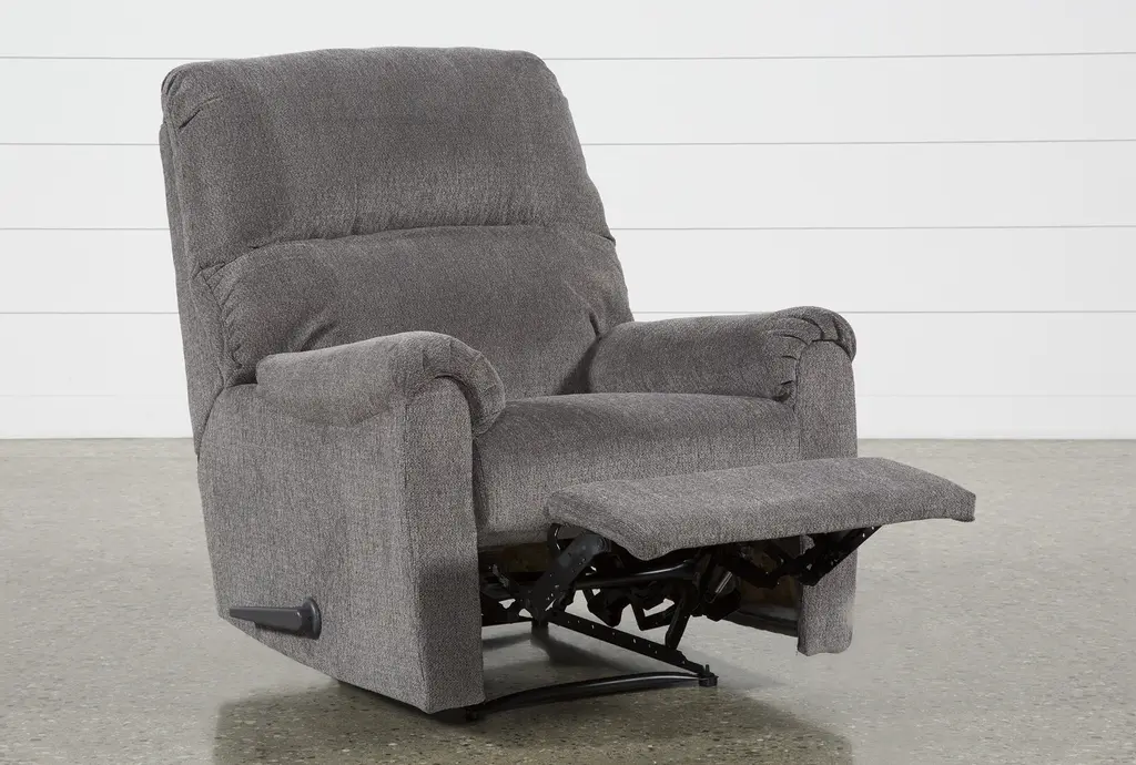 Experience the ultimate relaxation with the Nerviano Grey Manual Wallaway Recliner. This rocker-style recliner is perfect for your living room, offering a firm comfort level and a sleek, grey fabric finish that complements any neutral decor. Designed to fit small spaces, this wall hugger recliner provides an ideal solution for cozy rooms without sacrificing comfort or functionality.