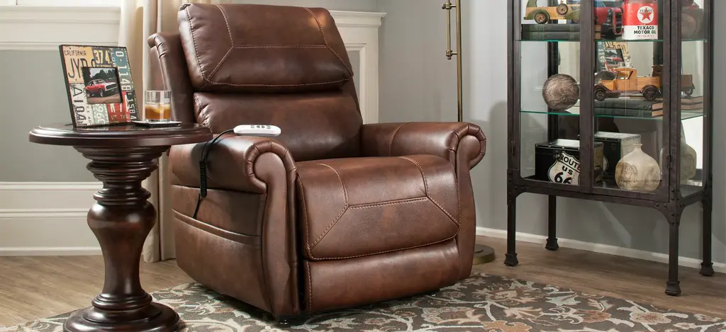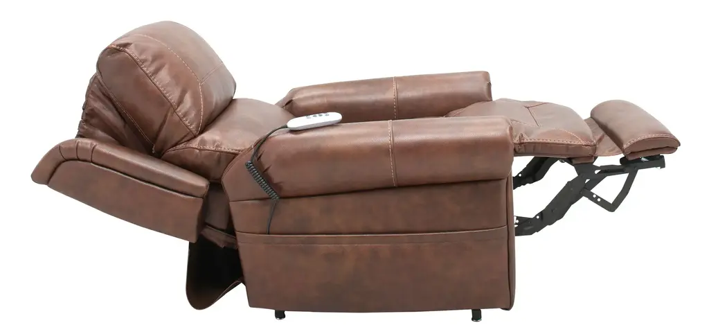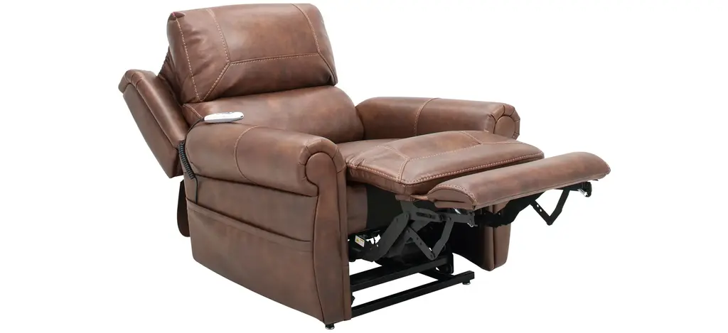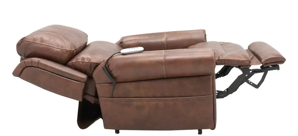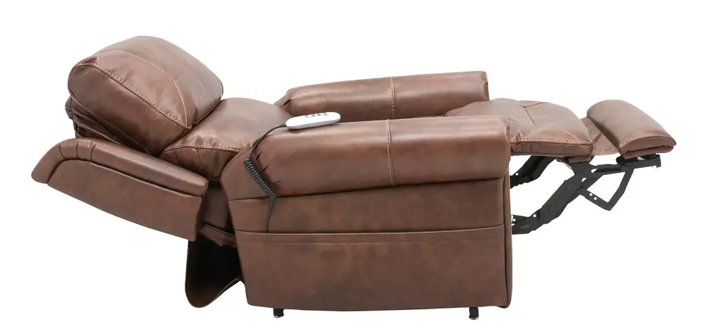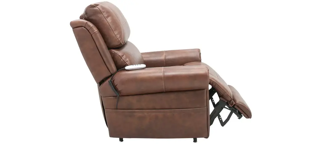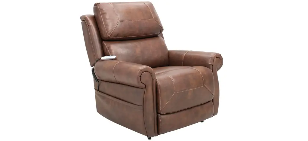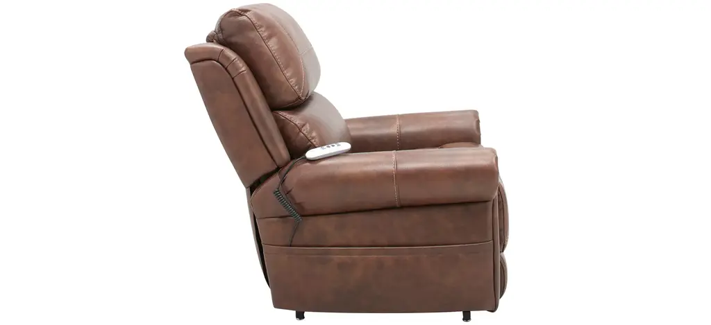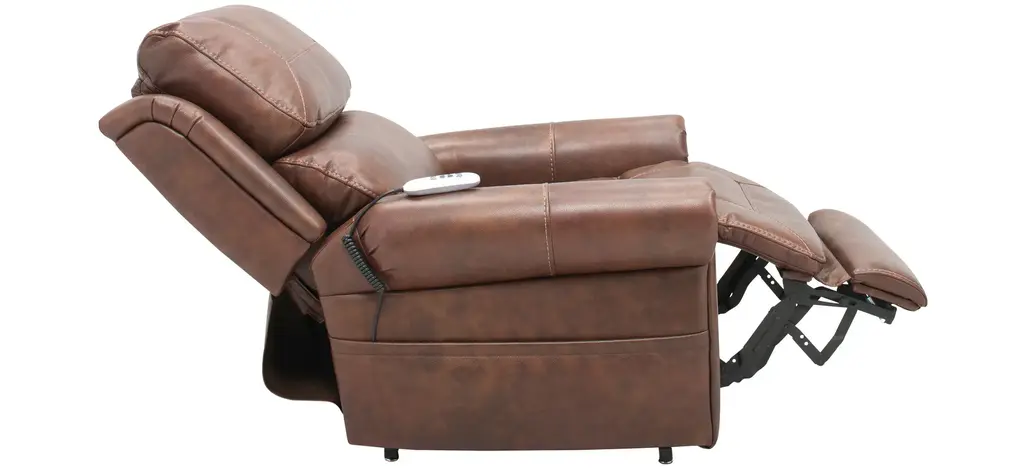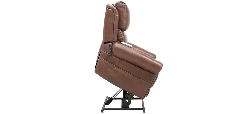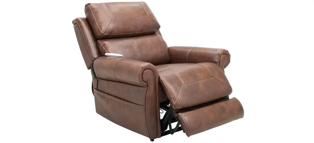 The Nesbit power lift recliner features a powered lift mechanism that pushes the chair up and tilts it forward to ease transition from a seated to standing position. Plus, the leather-look upholstery gives this recliner a luxurious feel. This recliner also has a lay-flat option, footrest with extension and independent back and recline functions for the ultimate comfort.