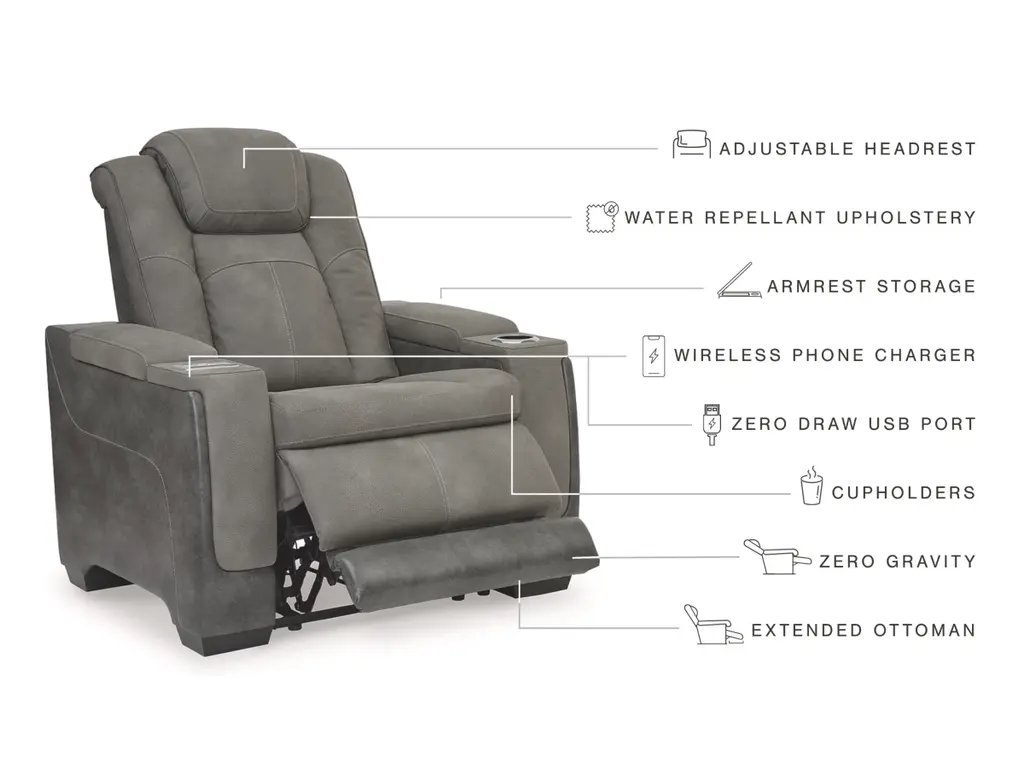 The sleek, ultra-modern Next-Gen DuraPella power recliner has it all. With designer style and head-to-toe comfort, it has the upscale look of leather at a scaled-down faux leather price. Its gray two-tone upholstery is more durable and water-repellent than regular leather, an added bonus for families. Features including wireless and USB charging, an adjustable headrest and an extended ottoman make this the next generation of power recliners.