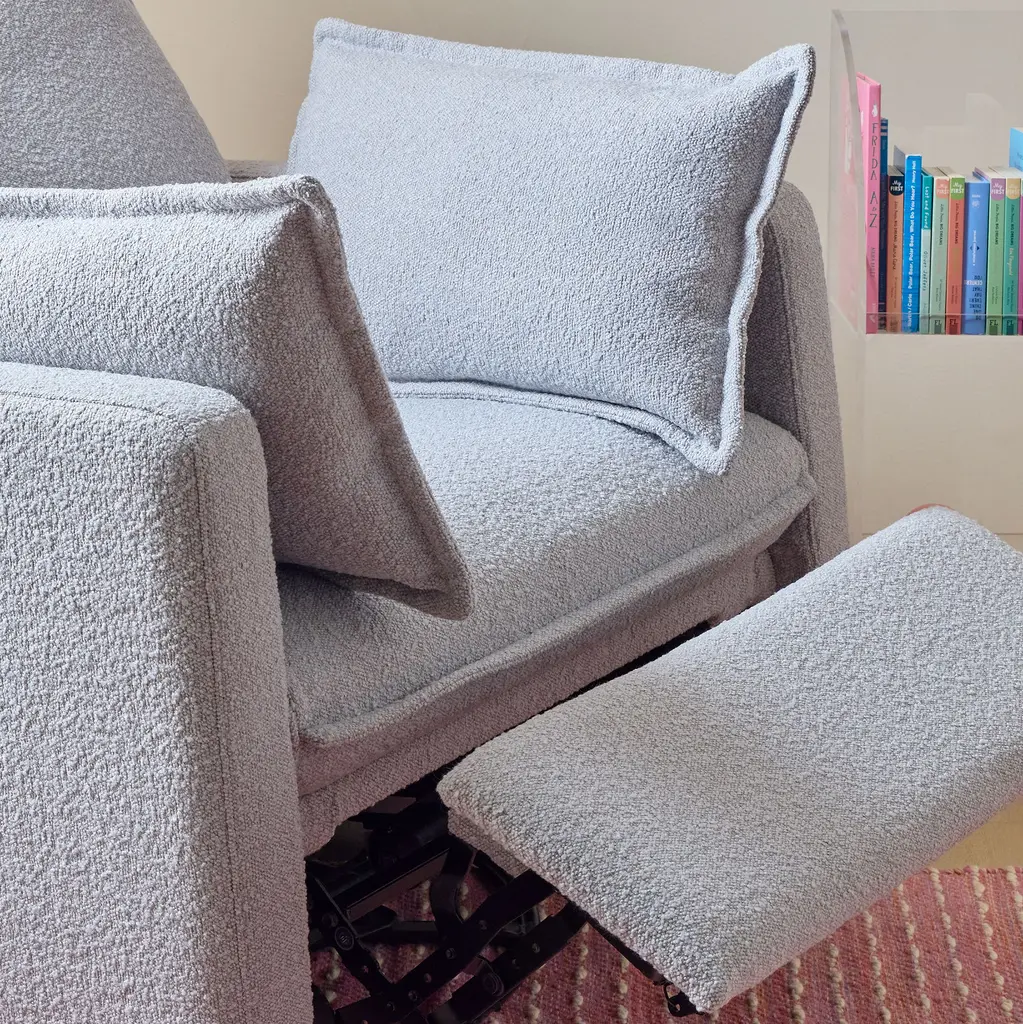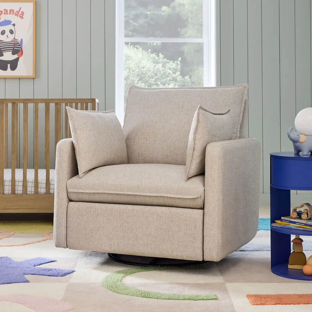 Reclines to various angles for personalized comfort. Swivels, glides and reclines smoothly. Covered in your choice of stylish fabric or vegan leather. GREENGUARD Gold Certified as low VOC.