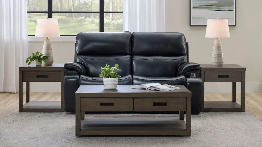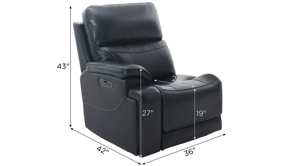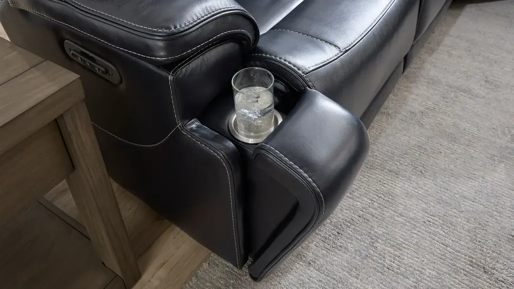 Immerse yourself in luxury and relaxation with the sumptuous Presley left arm-facing power recliner, a key component of your Presley sectional. The rich, inky hue exudes sophistication and pairs beautifully with any decor. Plush, top-grain leather envelops you in comfort, while power features including heat and massage elevate your experience to a whole new level.