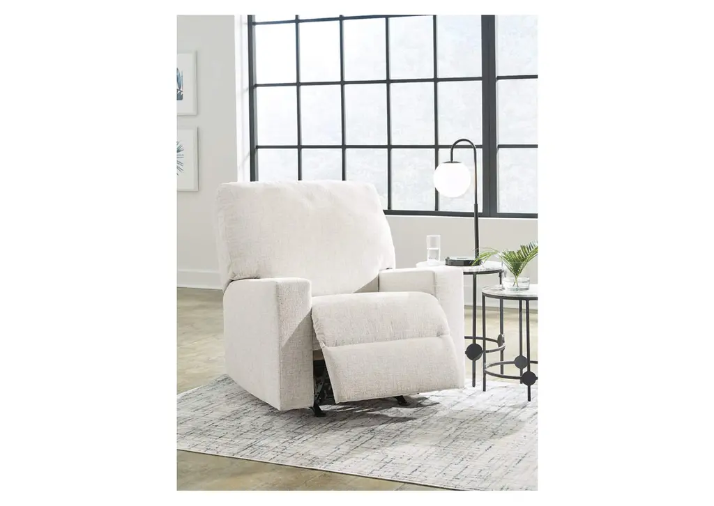 Add functionality to your home without compromising on style. The budget-friendly Rannis recliner has a clean-lined, contemporary feel that’s complemented with seamless features for your relaxation. Well-suited to living rooms and multi-use spaces alike, it effortlessly prioritizes your comfort and convenience with simple pull tab reclining and a soothing, gentle rocking motion. Weight 100.000 lbs. (45kgs.)