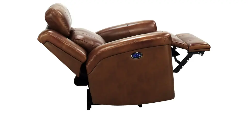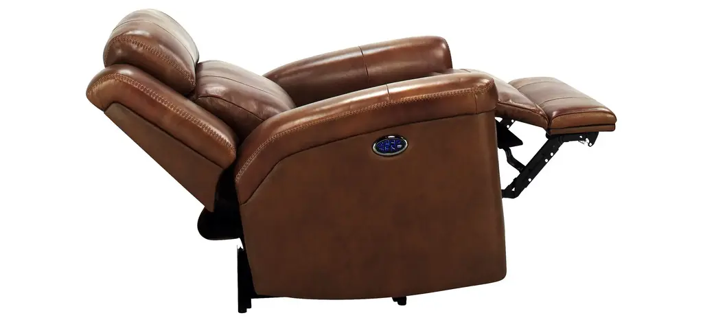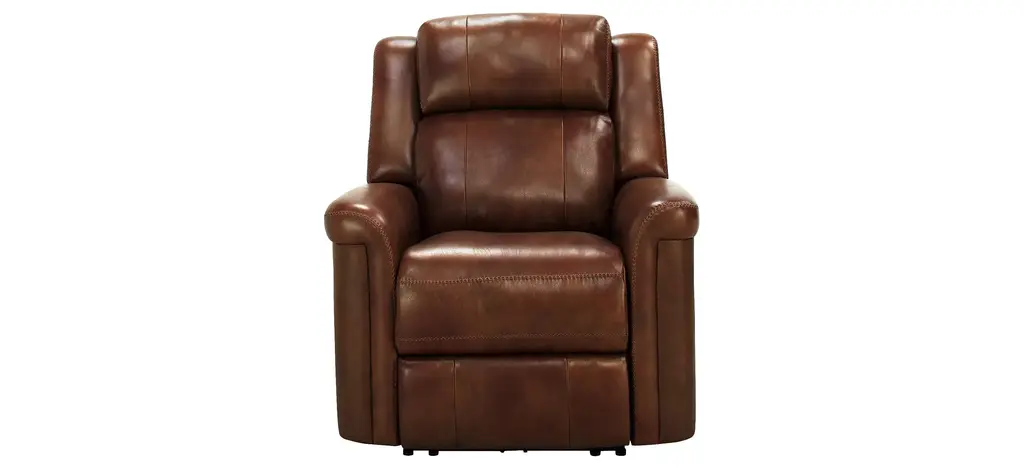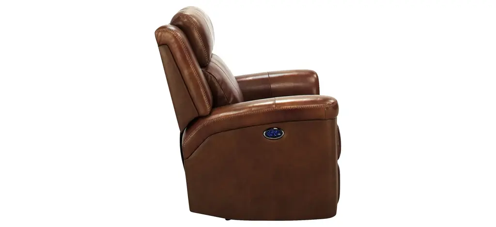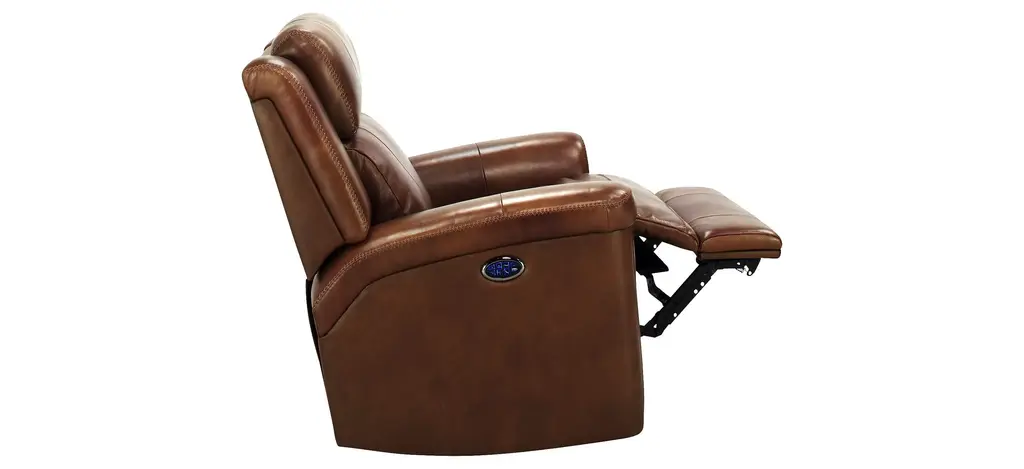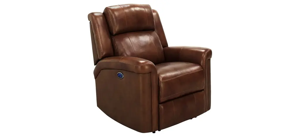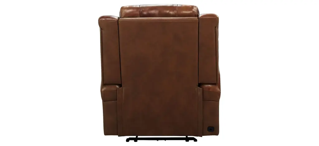 There's really no better way to enjoy a relaxing moment than on the Richfield leather power recliner. Its beautiful brown leather cushions and arms are so supple. Speaking of comfort, the power reclining seat and headrest let you customize your position perfectly. Plus, a built-in USB port lets you keep devices charged and close by.