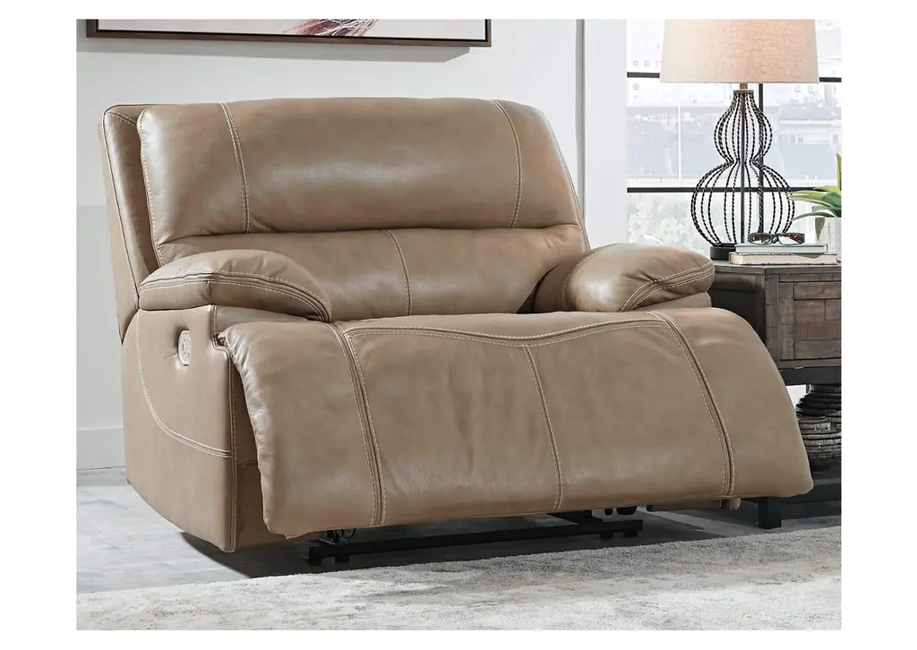 Life is so much better when you can enjoy the pleasure of real leather—at a price to put you at ease. That’s exactly what you get with this wide seat power recliner. Thanks to combination leather and faux leather upholstery, you've got a recliner that feels like a million bucks but won’t break the bank. Tailored to suit those with an eye for contemporary design, this power recliner is dressed to impress with an upscale matte finish, clean-lined divided back tufting, distinctive jumbo stitching and chic pillow top armrests. Perhaps best of all: an Easy View™ power adjustable headrest lets you recline back and still have a primo view of the TV.