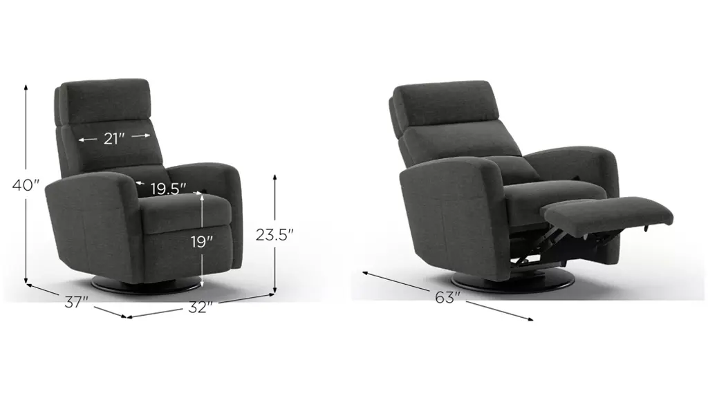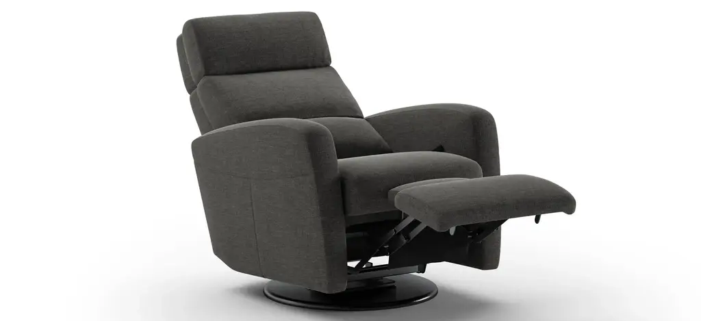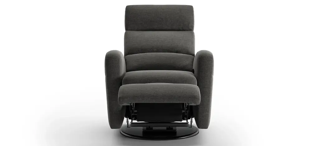 Everyone loves a good recliner, and the Sloped manual recliner is a transitional sloped arm chair with 4-way adjustable headrest complete with a glider, swivel base. Comfort is in your hands with the Sloped recliner.