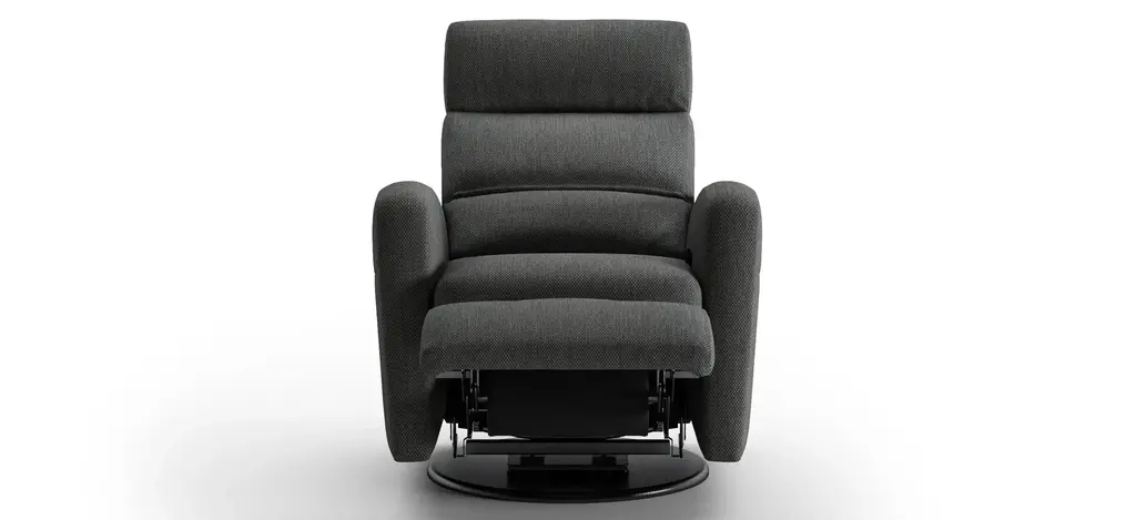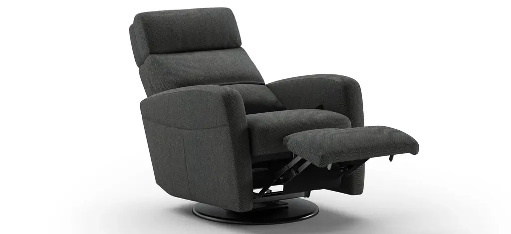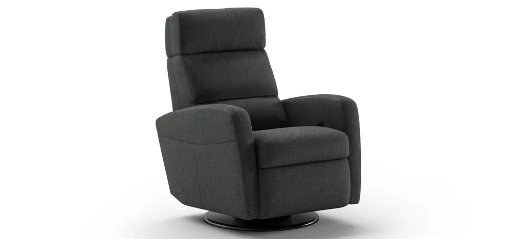 Everyone loves a good recliner, and the Sloped manual recliner is a transitional sloped arm chair with 4-way adjustable headrest complete with a glider, swivel base. Comfort is in your hands with the Sloped recliner.