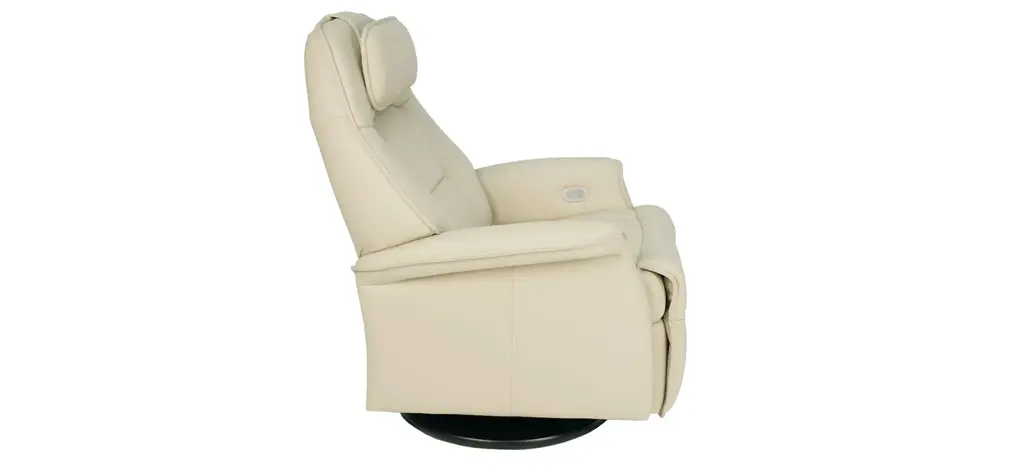 The Stockholm Large Recliner features an adjustable angle headrest, makes the seating experience ergonomic and gives your lower back correct support. Available in all our leathers and select fabrics,Stockholm is a swivel/glider/rocker recliner available in motorized and manual versions.