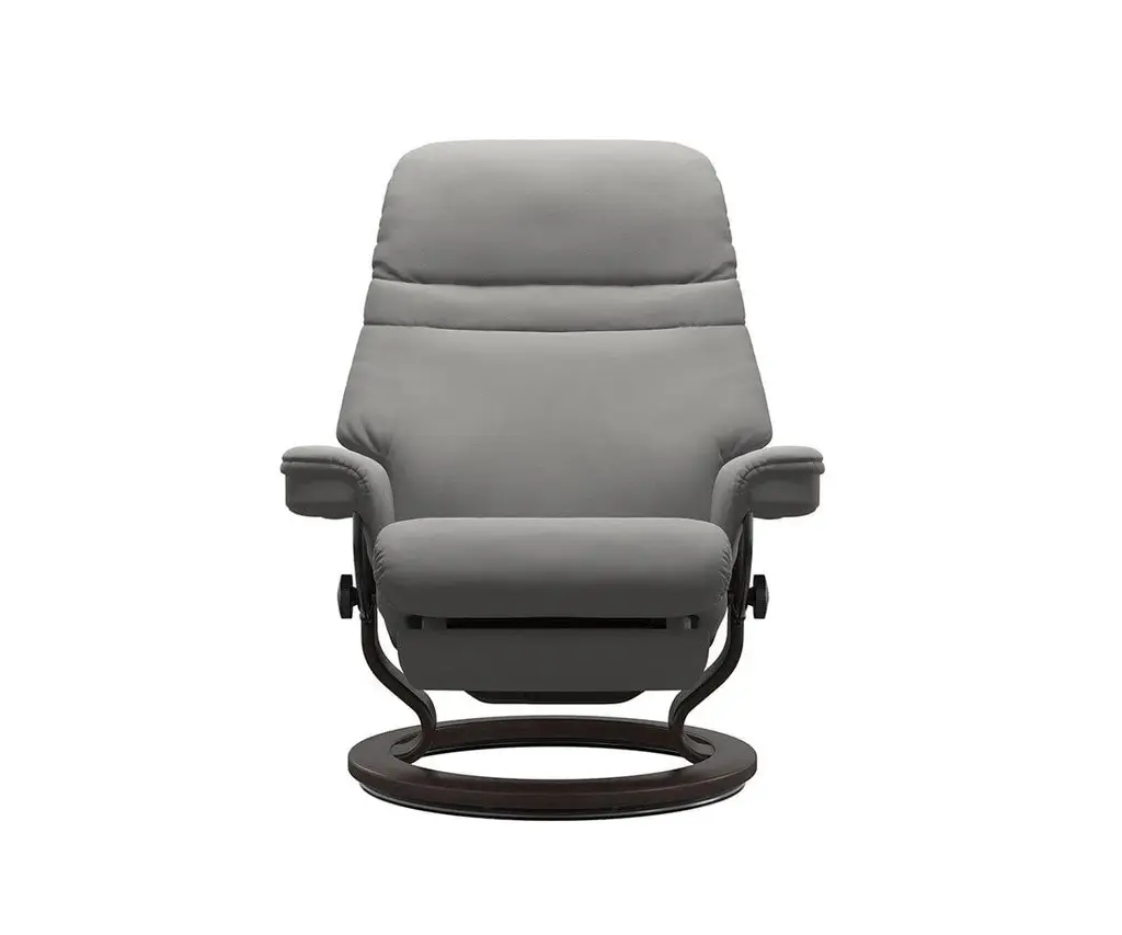 Made in Norway, the Stressless Sunrise Power Recliner is designed to be your ticket to redefining relaxation. Smooth lines and comfort zone technology fuse handsomely with leather-upholstered cushions that contour to your form as a discreet panel of buttons is easily accessed to use the power-operated footrest. *Also available for custom order. Choose from a wide selection of fabric and leather options to create a custom look. Prices and delivery times may vary.
