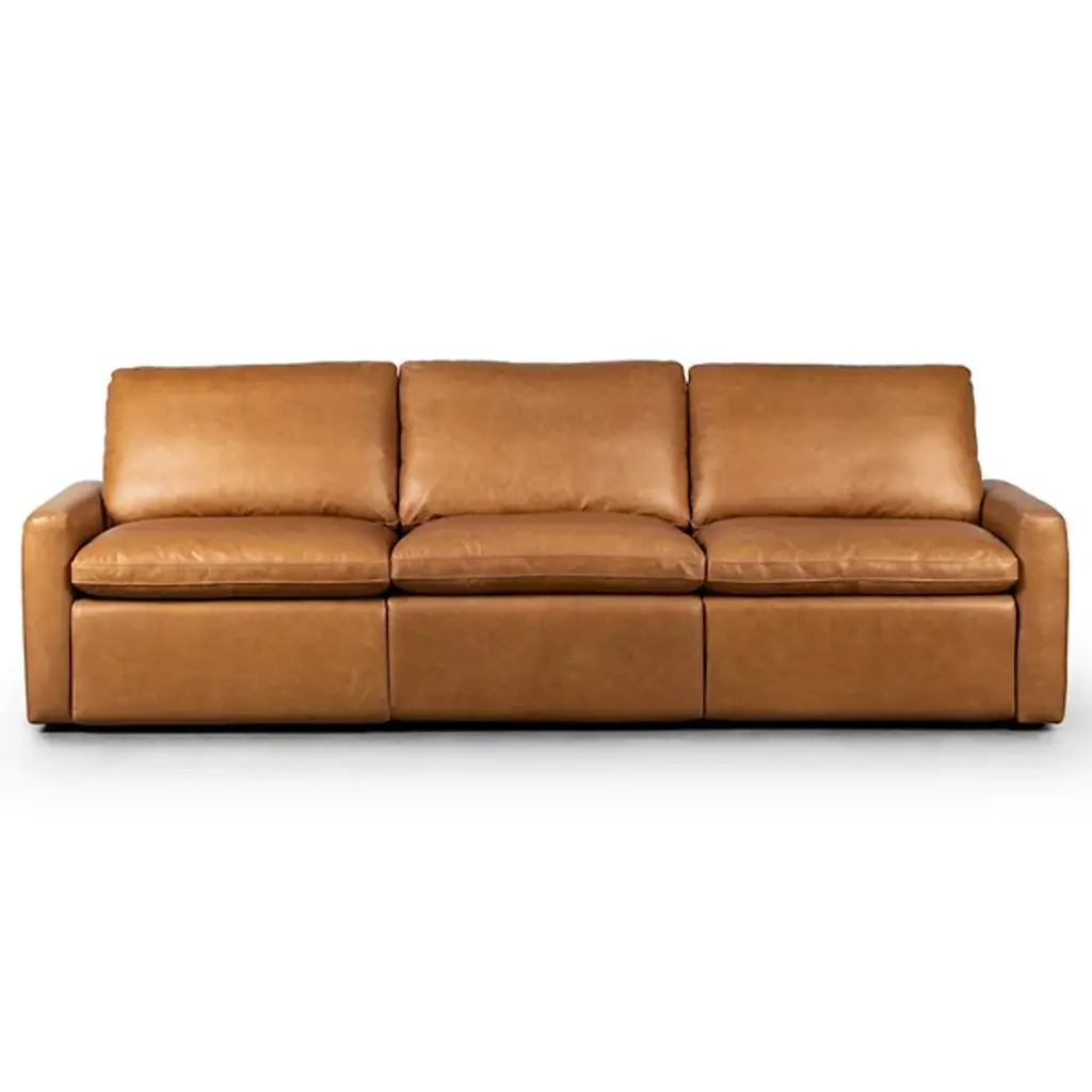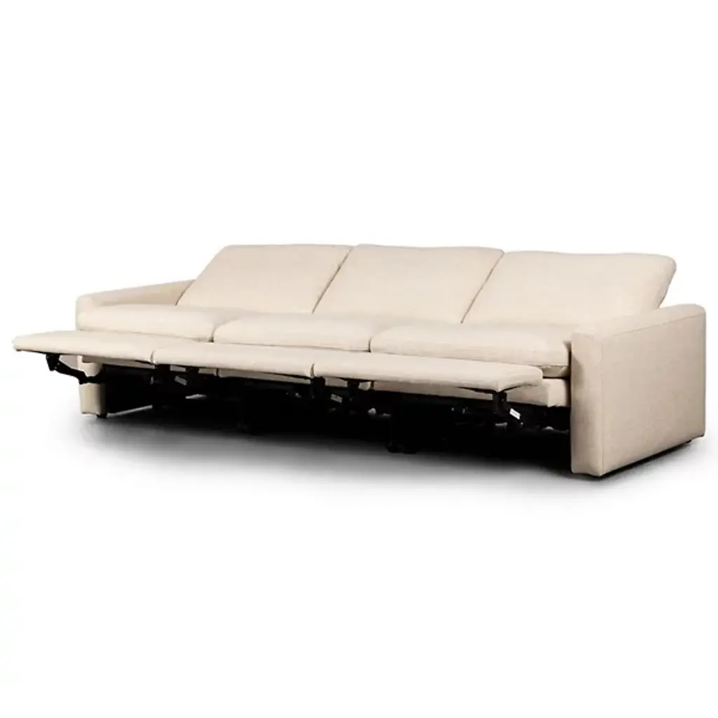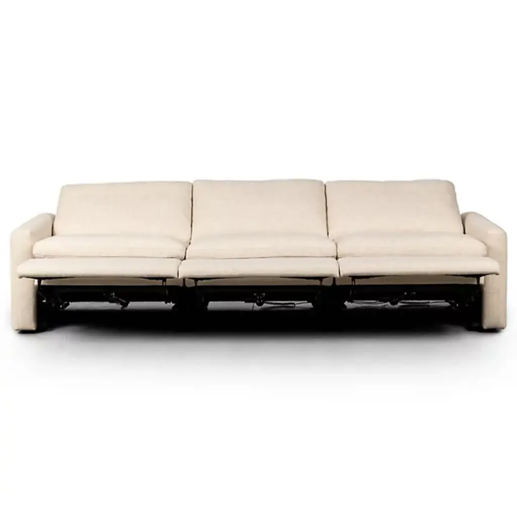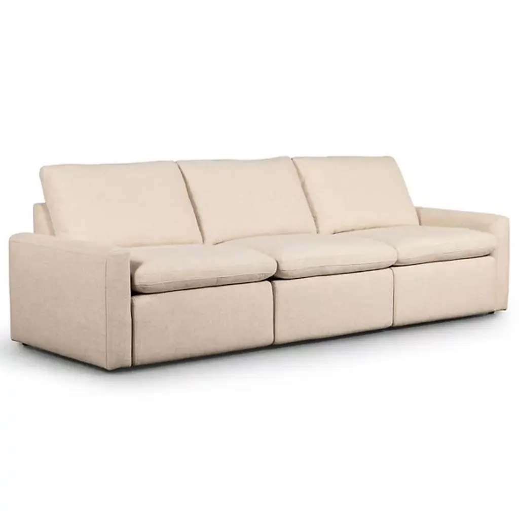Upgrade your lounging experience with this modern recliner sectional from the Tillery Power Recliner 3-Piece Sectional Sofa from Four Hands. Adjust your comfort with hidden buttons, and enjoy features like a higher seat and backrest, low-profile arms, and a motion footrest. Plush feather-blend cushions add a relaxed, cozy feel, while performance fabrics resist spills, stains, and wear. The zero-clearance design fits snugly against walls. Includes a 9'5" power cord with up to six motors per outlet.