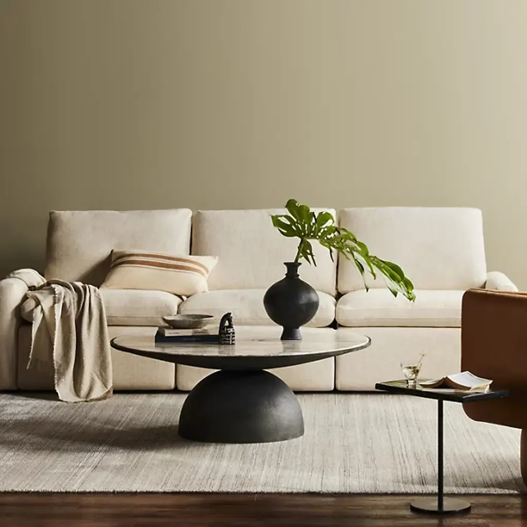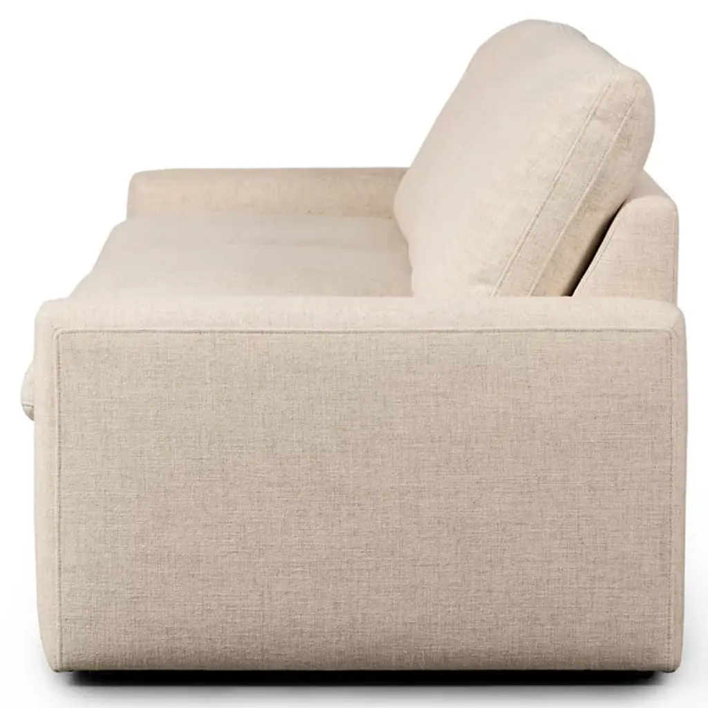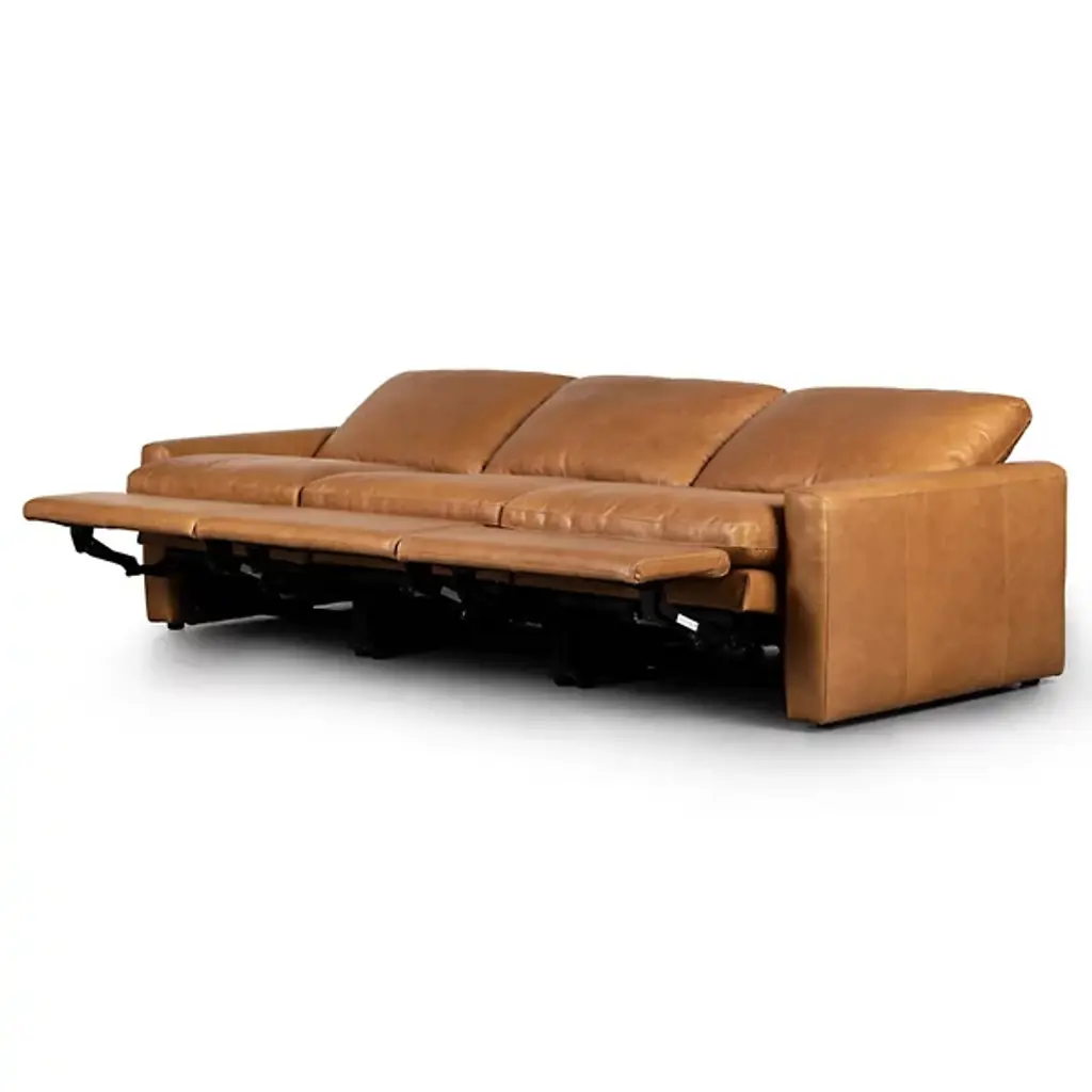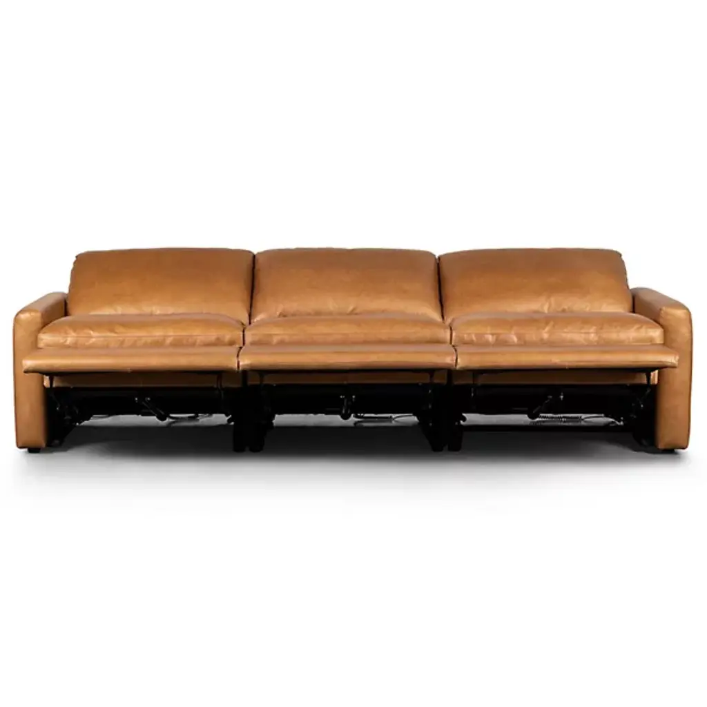 Upgrade your lounging experience with this modern recliner sectional from the Tillery Power Recliner 3-Piece Sectional Sofa from Four Hands. Adjust your comfort with hidden buttons, and enjoy features like a higher seat and backrest, low-profile arms, and a motion footrest. Plush feather-blend cushions add a relaxed, cozy feel, while performance fabrics resist spills, stains, and wear. The zero-clearance design fits snugly against walls. Includes a 9'5" power cord with up to six motors per outlet.