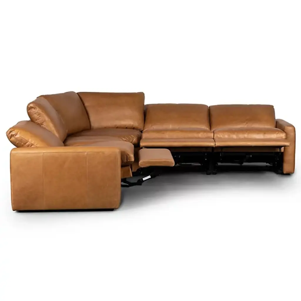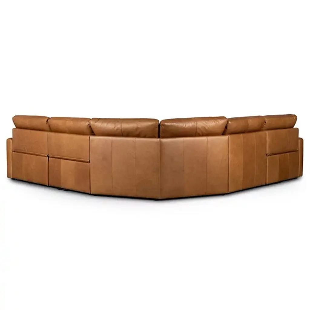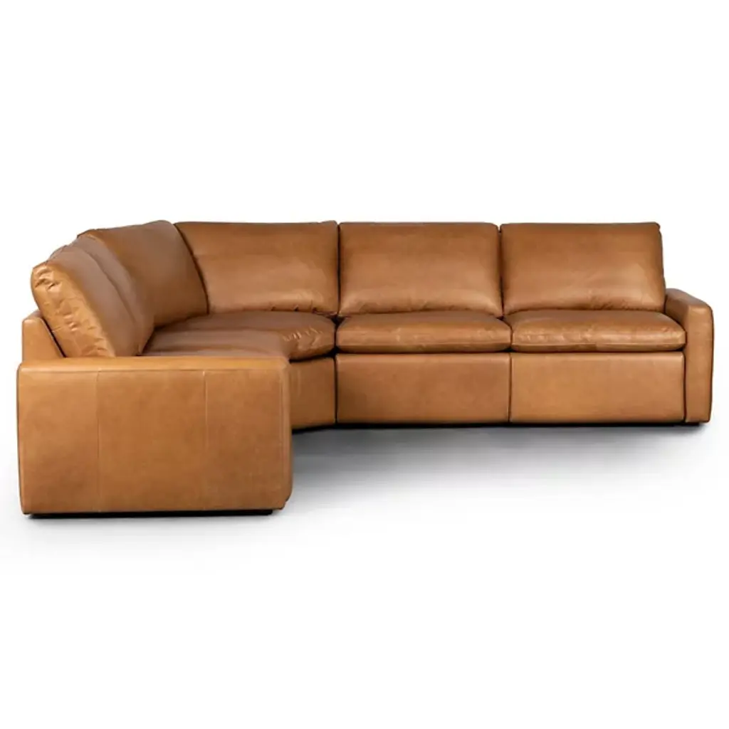 The Tillery Power Recliner 5-Piece Sectional Sofa by Four Hands combines modern design with personalized comfort. With elevated seats, a supportive backrest, low-profile arms, and a motion footrest, it balances style and function. The plush feather-blend cushions offer a cozy, relaxed feel, while performance fabrics protect against spills, stains, and wear for lasting durability. Its zero-clearance design lets it fit neatly against walls, making it a versatile and space-efficient choice for any home.