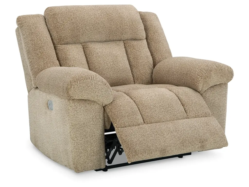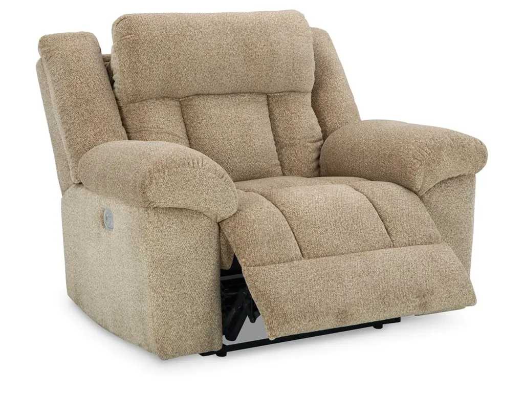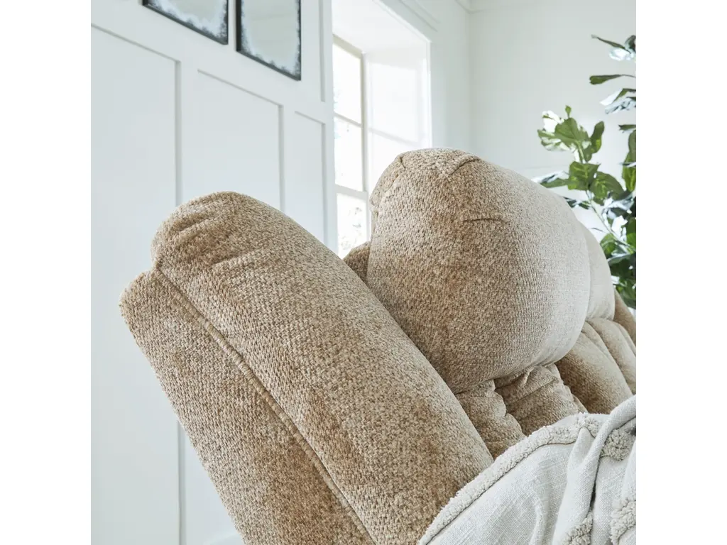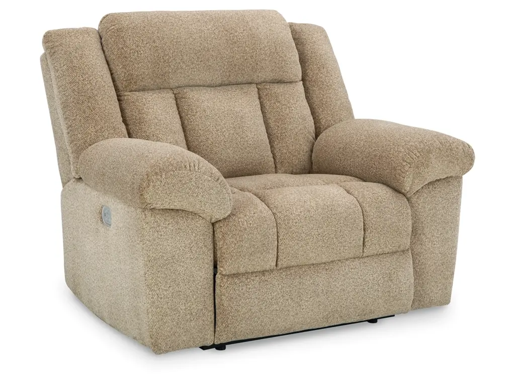 Big, bold comfort. Game time and movie nights meet their match with the Tip-Off power recliner. Made for ultimate indulgence, an extra-deep seat encourages you to sit back and bliss out. Customize the recliner and headrest to find your ideal viewing position with effortless one-touch controls. And with plush upholstery in a trendy hue, you won’t need to sacrifice style for cozy seating.