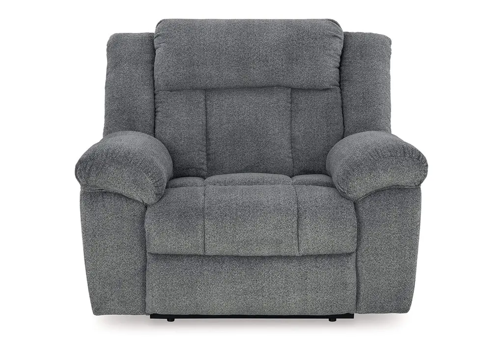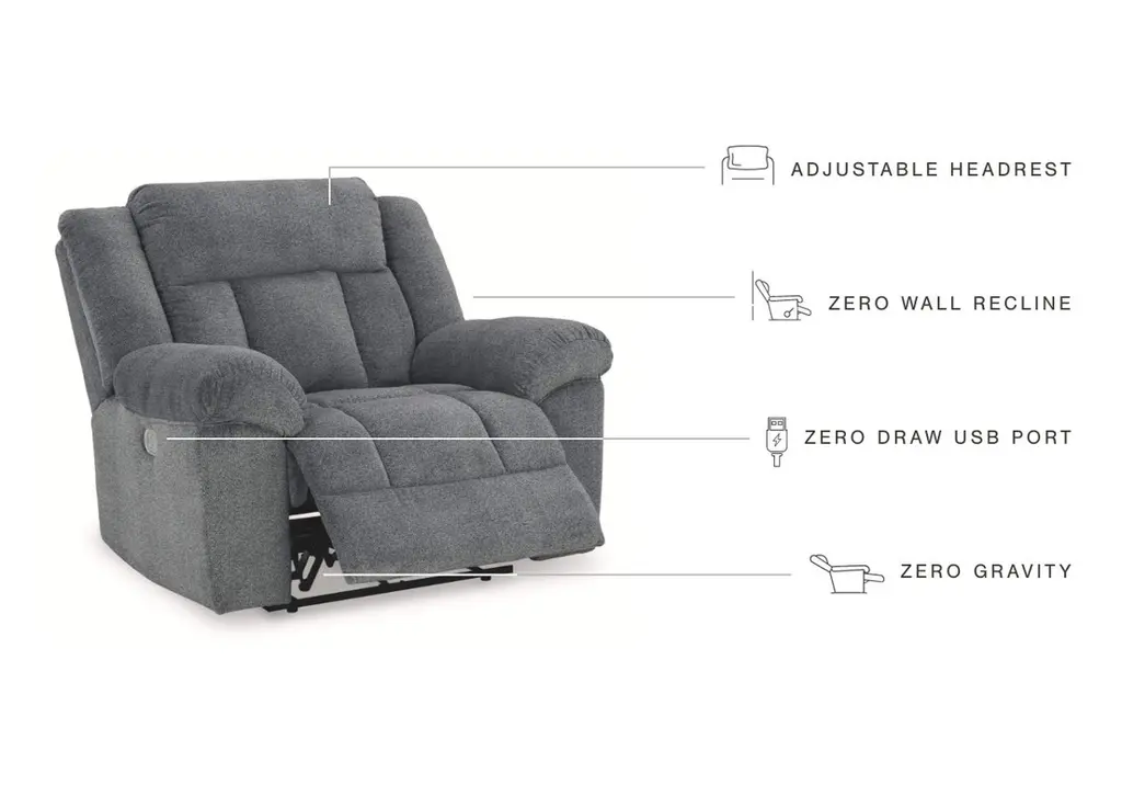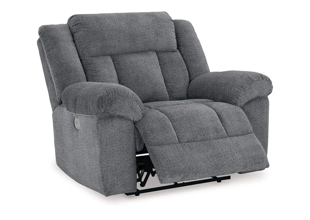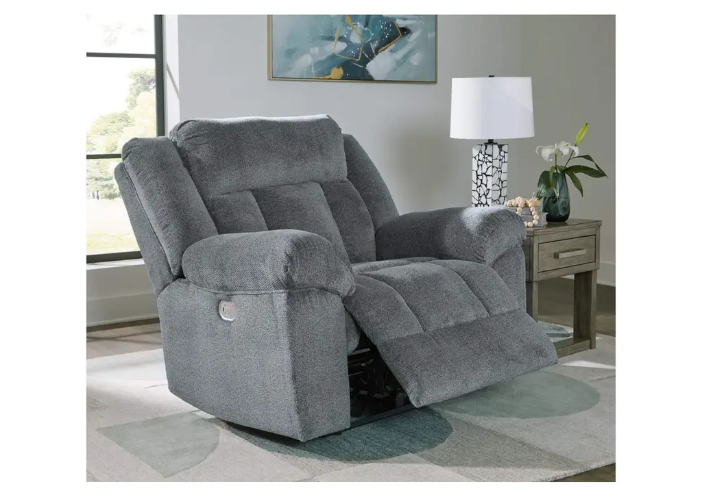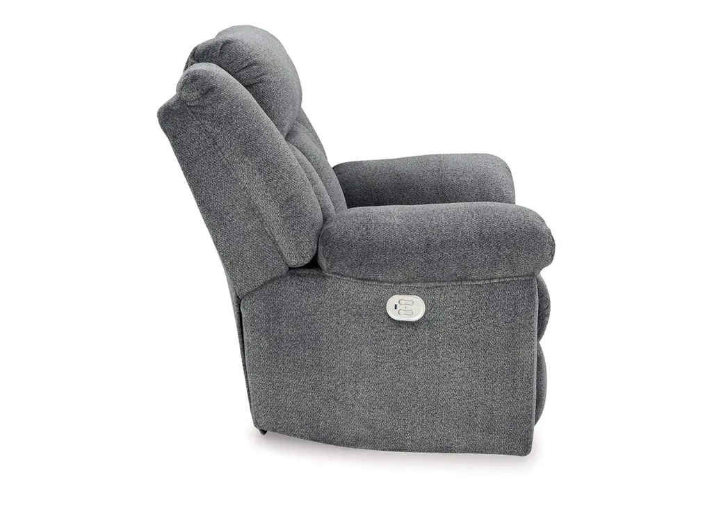 Big, bold comfort. Game time and movie nights meet their match with the Tip-Off power recliner. Made for ultimate indulgence, an extra-deep seat encourages you to sit back and bliss out. Customize the recliner and headrest to find your ideal viewing position with effortless one-touch controls. And with plush upholstery in a trendy hue, you won’t need to sacrifice style for cozy seating. Weight 165.000 lbs. (74.25kgs.)