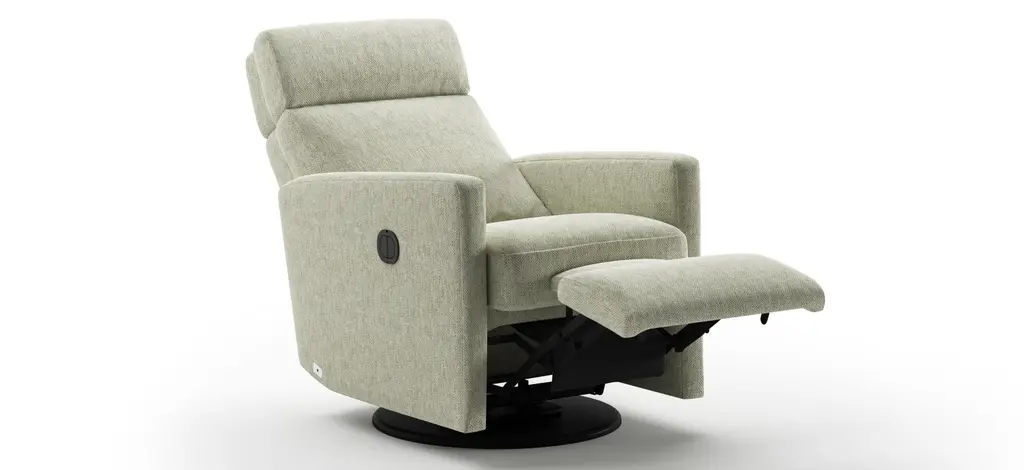 Simple lines give the Track power & battery recliner its modern appeal. Find your comfort with a 4-way adjustable headrest and glider/swivel base, you can customize your comfort level to the chair. Whether battery powered or manual function, Track is the perfect addition to your home.