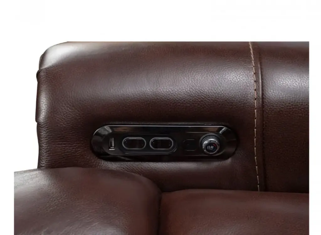 A perfect combination of clean line design and the ultimate in seating comfort. Wall proximity recliner with power recline, power headrest and heated and cooled seats. Plush kneed backrolled arms and pad over chaise bucket seating with pocketed coil springs provide head to toe comfort. Perforated leather panels in the seat and lower back allow warm or cool air to gently pass through. 3-level temperature control knob with light indicator allows you to select the exact setting for your personal comfort. The power controller operates the power recliner, power headrest, and temperature. There is also an USB port to keep your devices charged.