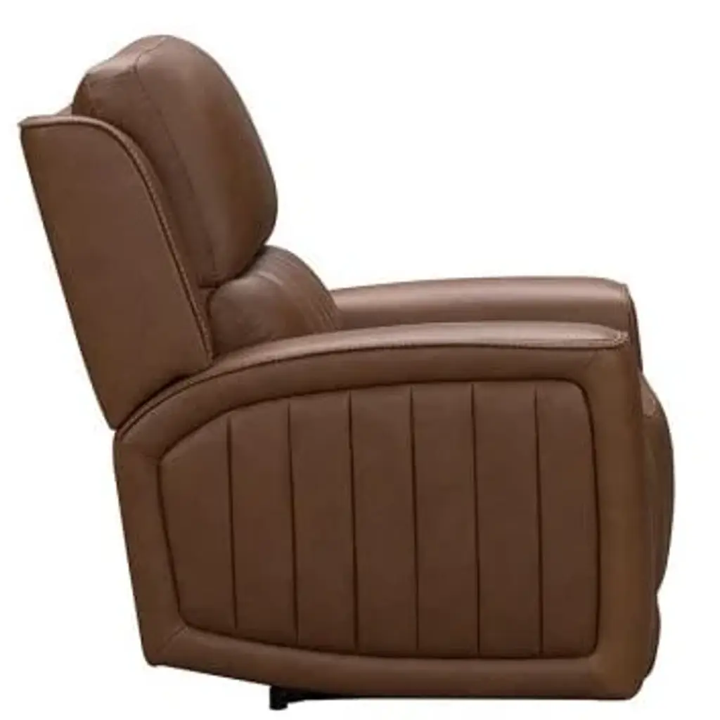 Sporty styling is found in this sophisticated modern reclining group. Features winged split pub channeled back with power headrest, power lumbar and drop-down table with 2 cup holders. Channeled pad over chaise pocketed coil seating fully supports your legs by eliminating pressure points. Large track arms with decorative whip stitching and welt details. Inside the arm power controller for easy access with USB port.