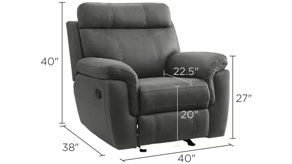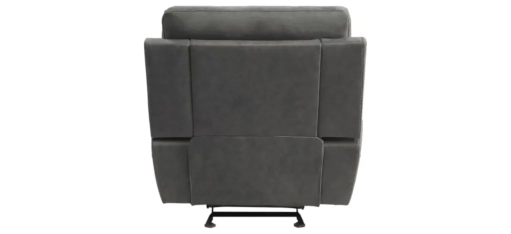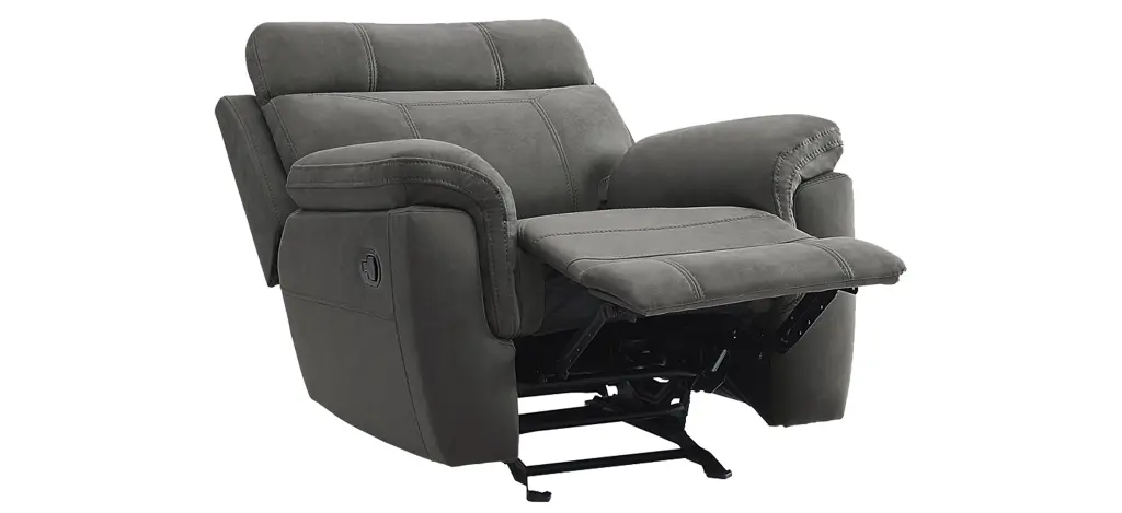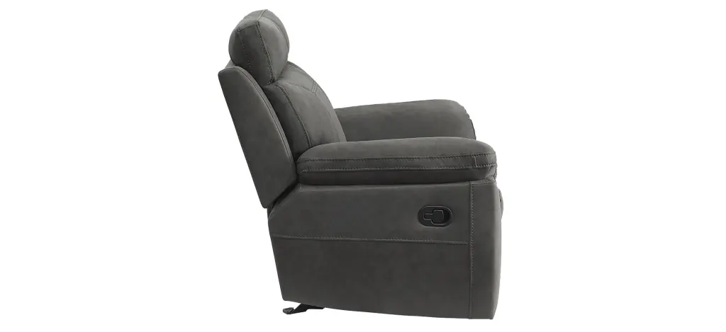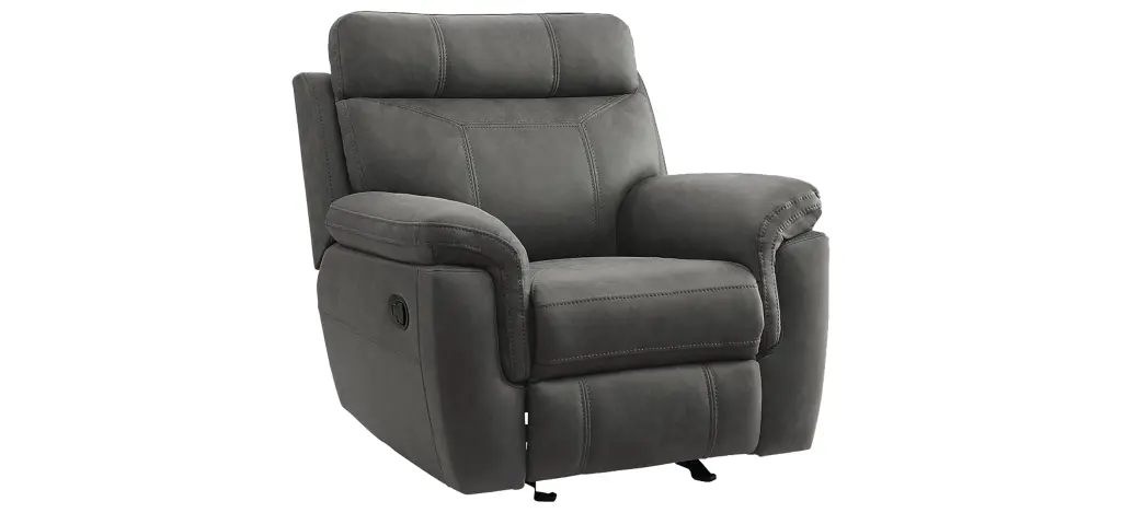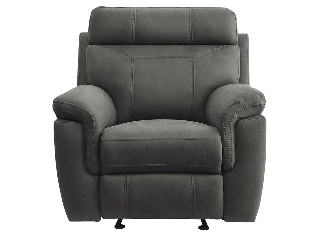 The modern profile of the Walter Collection serves to provide comfort, function and style to your home's casual living room. The gray polished microfiber that covers the plush arms and seating of the chair lends to the decorative versatility of the collection. The glider reclining chair features a manual motion mechanism operating with the pull of a side-mounted tab, that once engaged, take you from seated to reclined in an easy motion.