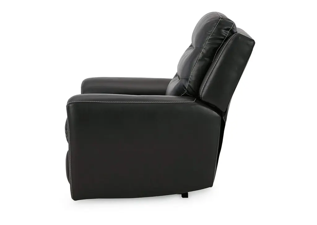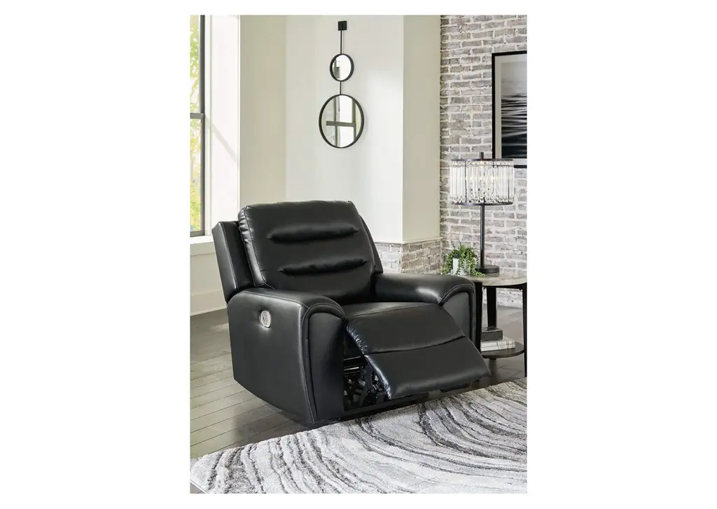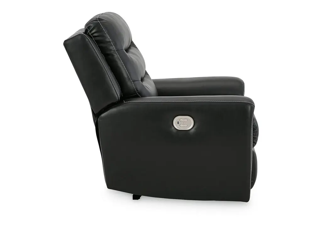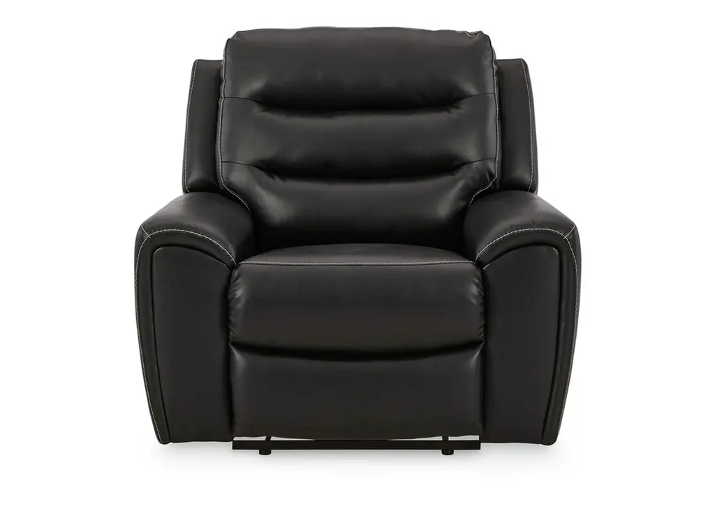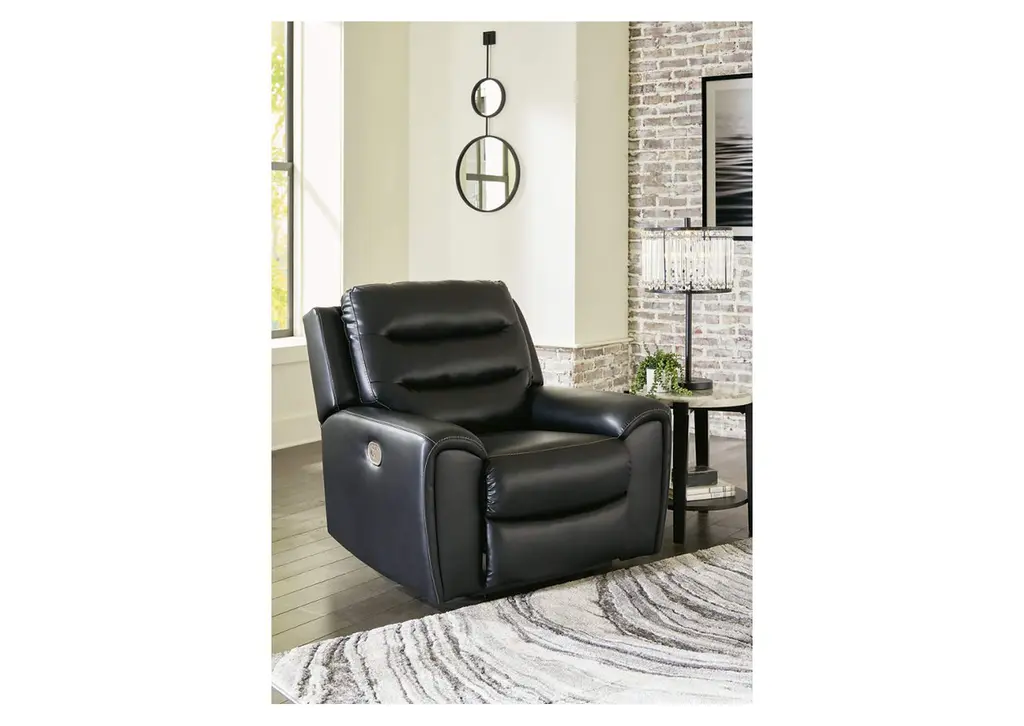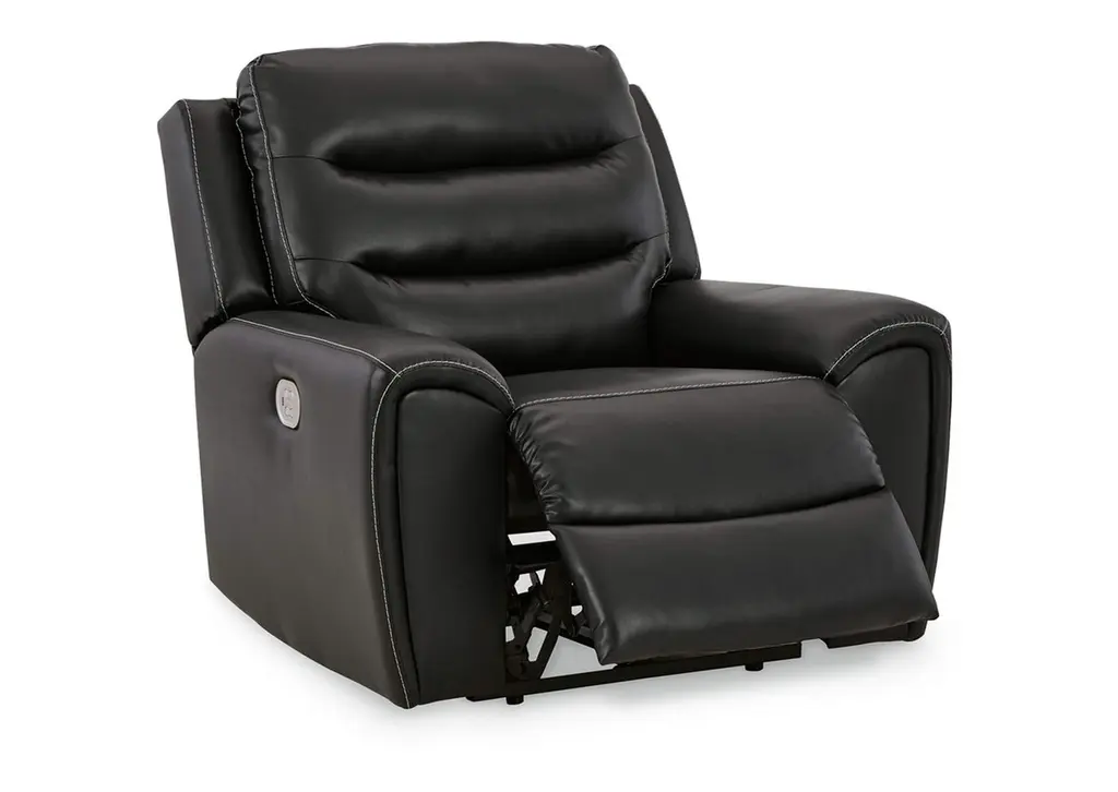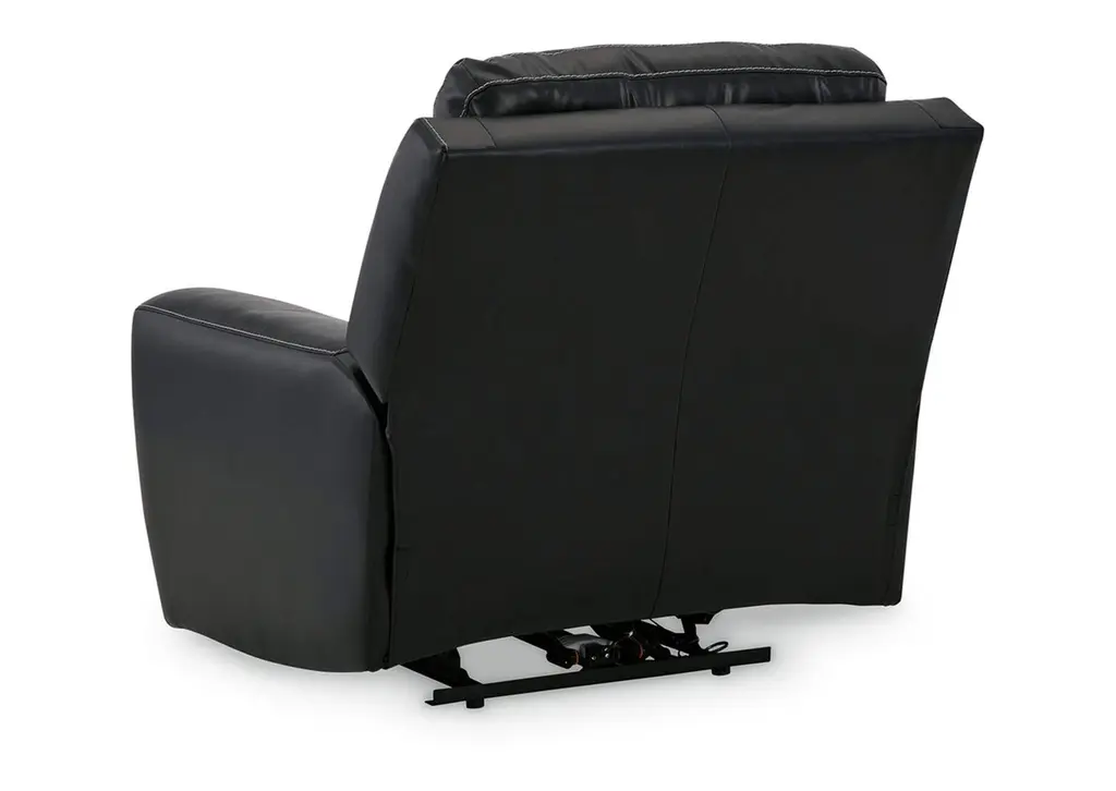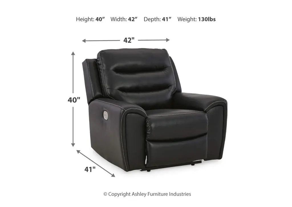 With its decidedly contemporary styling, the Warlin power recliner has a sleek sensibility that seamlessly elevates your living room's style. Explore endless possibilities for comfort with its one-touch power control, zero-gravity reclining and adjustable headrests. A triple-tier back and chic black upholstery round out this simply stunning piece. Weight 130.000 lbs. (58.5kgs.)