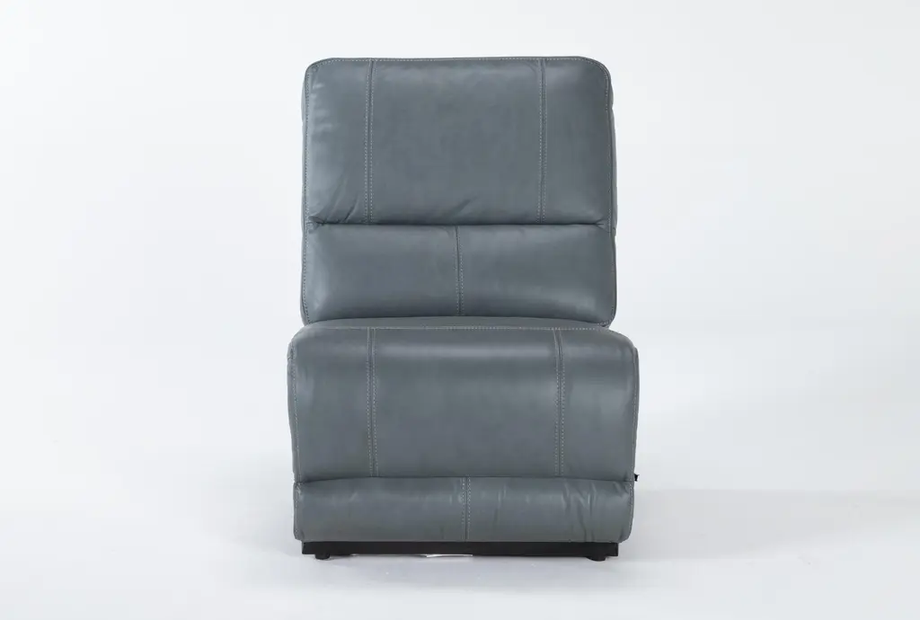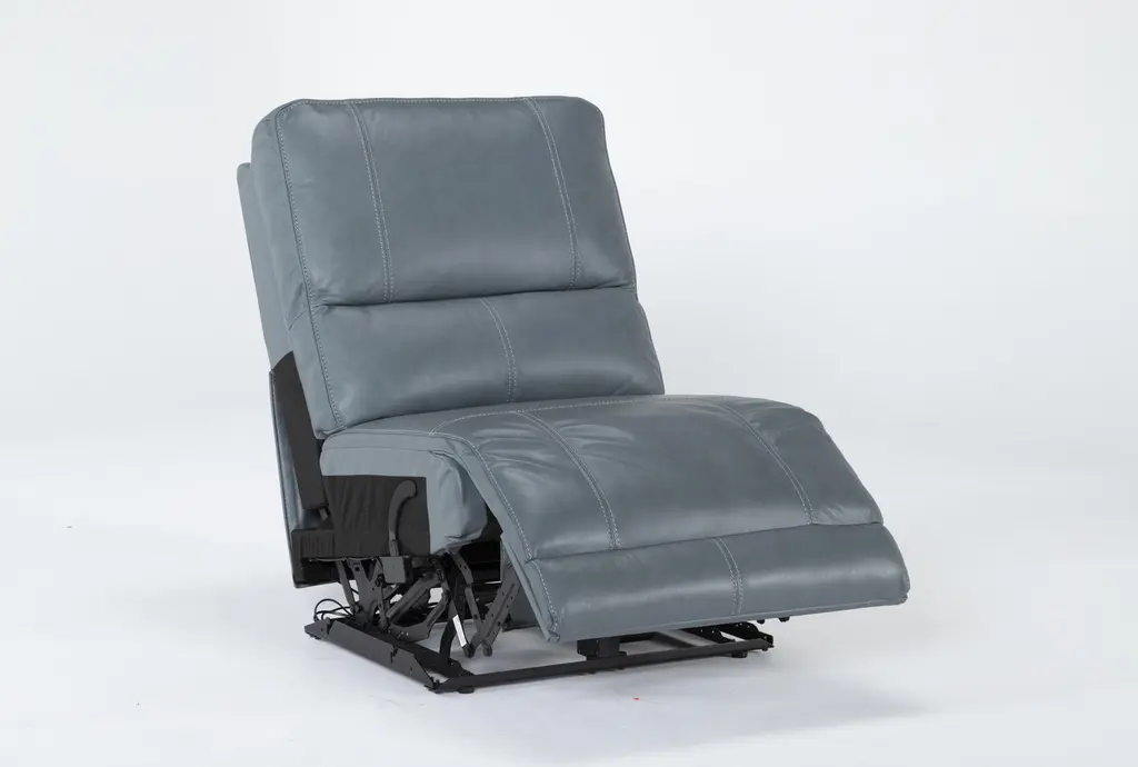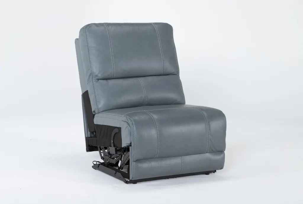 The Watkins Blue Leather Cordless Power Armless Recliner is a stylish and comfortable addition to any living room, featuring a tight back and armless design. Made from top grain leather with a modular configuration, this power recliner is available in a beautiful Verona Azure blue color.