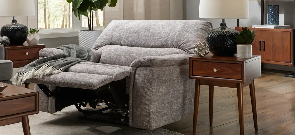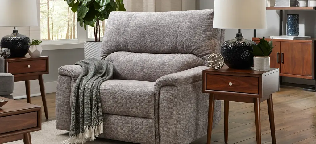 Recline and enjoy peaceful comfort with the Zeke power recliner. Upholstered in silky soft chenille, this recliner can quickly become your go-to spot. It features infinite reclining positions so you can find your perfect selection. Plus, this recliner's power headrest is an added bonus.