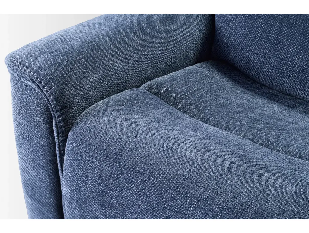 Relax in luxurious comfort with the Anders Power Sofa Recliner with Power Headrest and Table from Kuka Furniture. This contemporary-style sofa features soft fabric upholstery with padded arms, and tufted backs and footrests. View your favorite programs sitting upright or recline and take a nap at the touch of a button. The center back cushion pulls down to reveal a flat table surface with two cup holders. A convenient USB port lets you charge your electronic device while you recline.