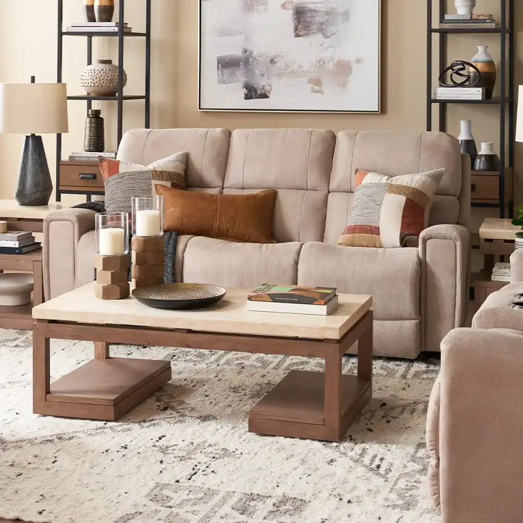 The smooth style of the Apollo Power Reclining Sofa with Headrest & Lumbar shines! Its plush, power-adjustable support revs up a room. Bold armrests, box-border backs and bucket chaise seats inspire applause, and head-to-toe comfort steals the show.