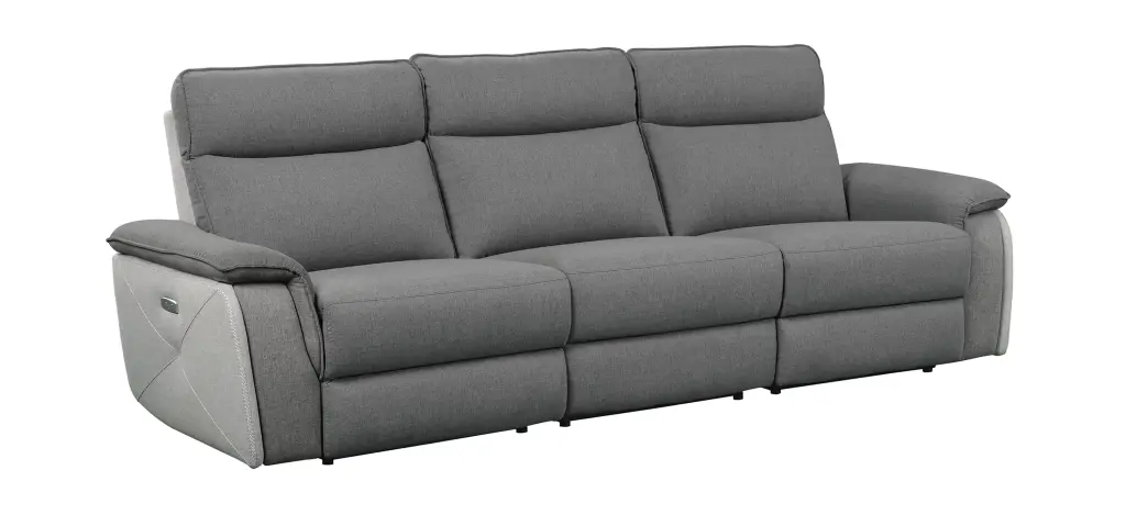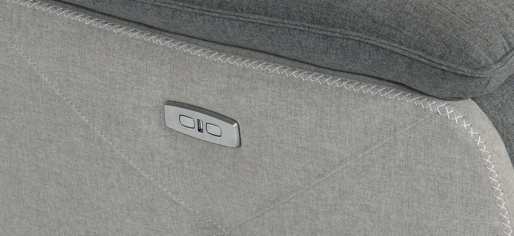 Providing ample seating for your friends and family is the Ashton Power Double Reclining Sofa w/Power Headrests. The sofa features by USB port enhanced end power recliners. Gray fabric covers the collection providing a gentle touch. The power reclining mechanism brings you to your desired position with a touch of the button. Providing additional function to the sofa is the USB ports and power operated headrests that allow you to further customize your comfort experience.Providing ample seating for your friends and family is the Ashton Power Double Reclining Sofa w/Power Headrests. The sofa features by USB port enhanced end power recliners. Gray fabric covers the collection providing a gentle touch. The power reclining mechanism brings you to your desired position with a touch of the button. Providing additional function to the sofa is the USB ports and power operated headrests that allow you to further customize your comfort experience.
