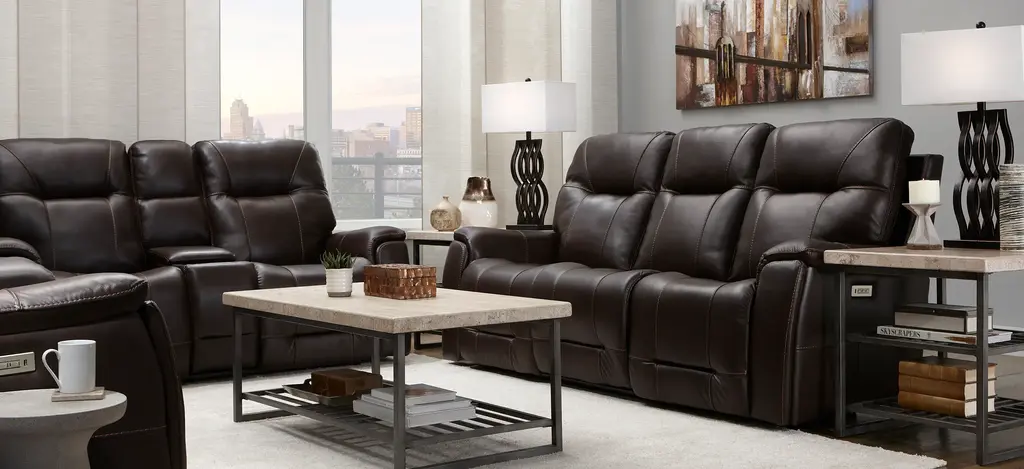 The Barnett power sofa's state-of-the-art design brings a whole new meaning to the word relaxation. Power reclining, power headrests and power lumbar support will help you find your perfect position, while built-in USB ports and cupholders offer incredible convenience. Plus, top-grain leather seating is crafted for comfort and durability.