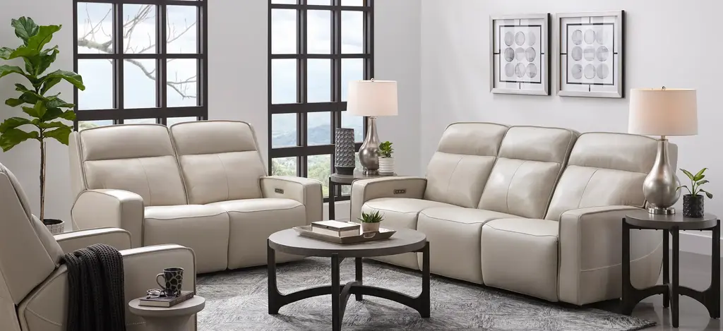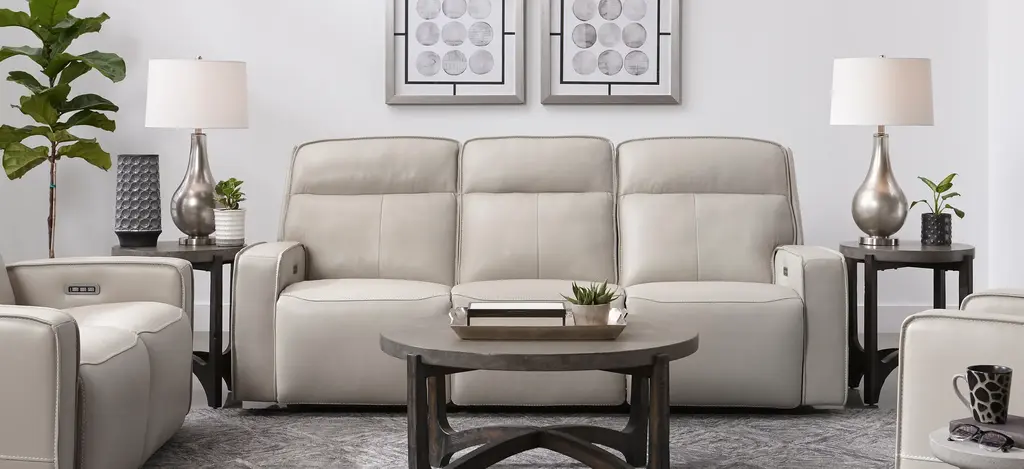 Top-of-the-line comfort and looks are what you get with the Beckett power sofa. Versatile ivory-colored top-grain leather offers plush and durable seating, while features like USB ports, power headrests and lumbar support complete the experience.