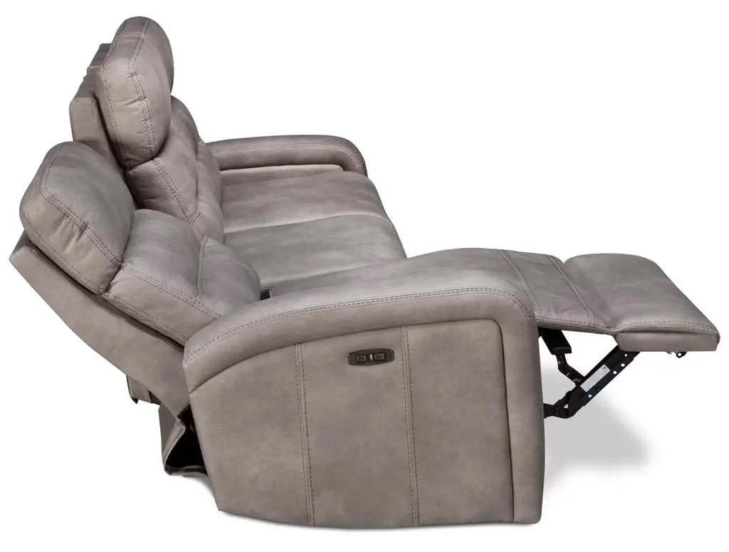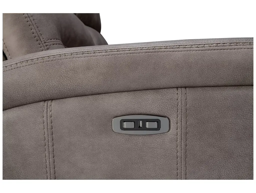 Kick back and relax on the Synergy Home Berlin Power Sofa Recliner. It features two reclining seats, tufted backs and footrests with track arms, and stitching details. The power buttons let you enjoy all the reclining positions at your fingertips. This transitional-style power sofa recliner also includes a USB charging port.