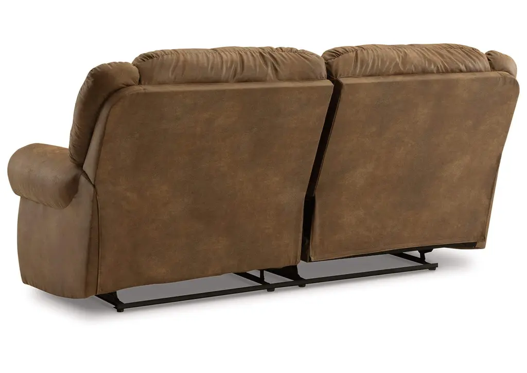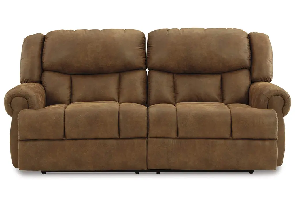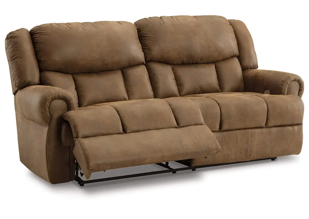 Expansive elegance. The Boothbay power reclining sofa makes a sizable style statement. Its large scale enhances the luxe appearance, magnifying the beauty of richly warm brown faux leather. Polishing off the piece is one-touch power reclining, which adds a layer of function to this masterclass in form. Weight 252.000 lbs. (113.4kgs.)