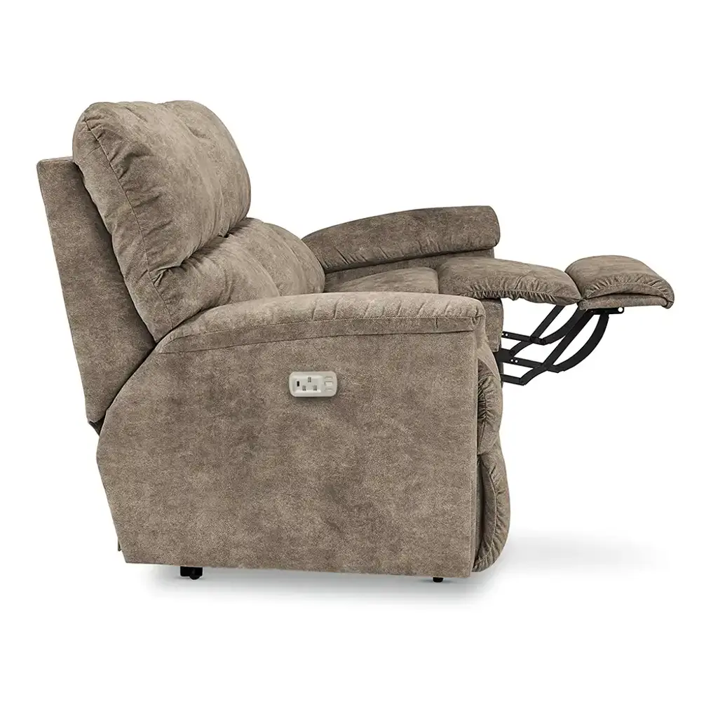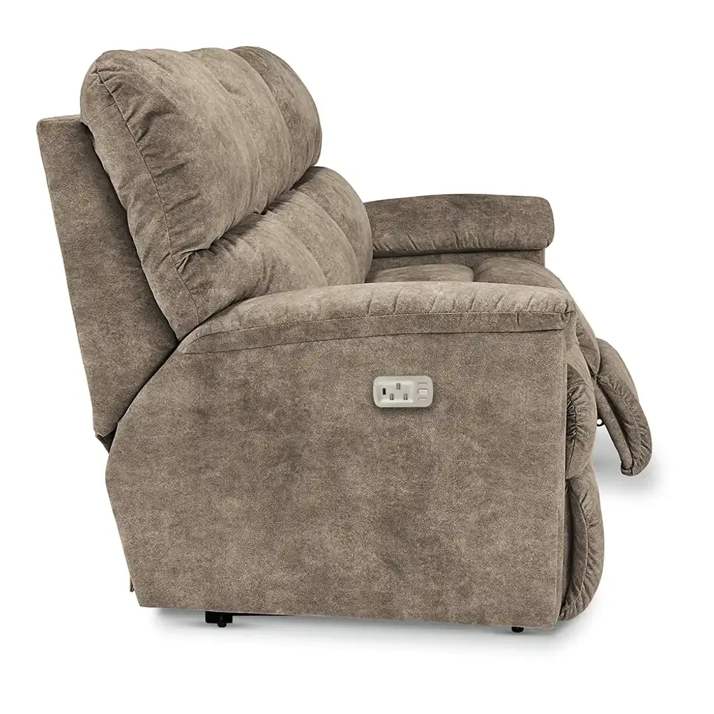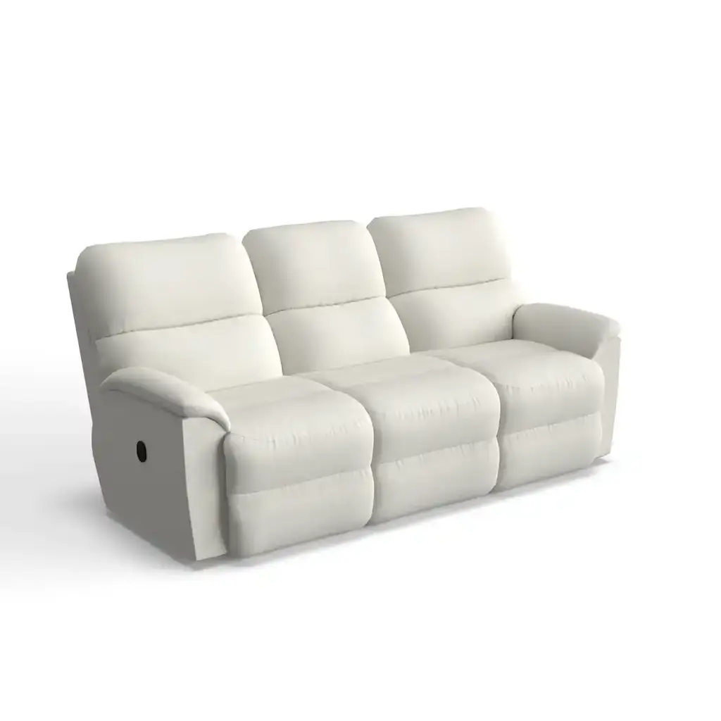 With rich cushioning and casual style, the Brooks Power Reclining Sofa with Headrest offers vast comfort without a bulky profile. Sleek padded arms and simple straight lines accent plush power-adjustable backs and chaise seats for a clean, cozy look.