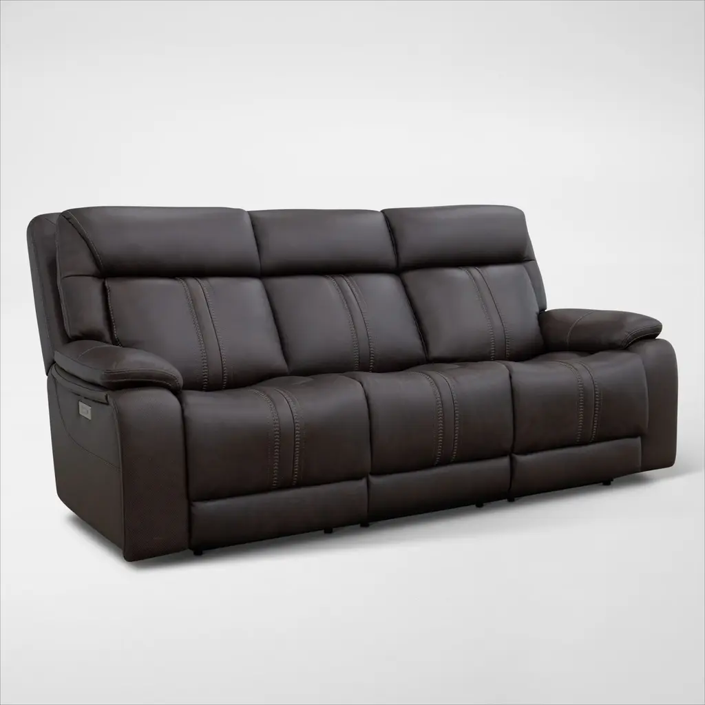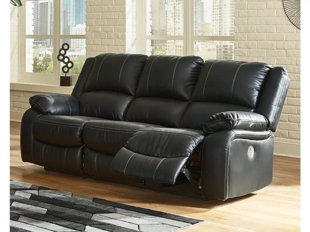 Sleek and streamlined, the Calderwell power reclining sofa draws out your leisure time with its bustle back construction and thickly cushioned armrests. The super soft faux leather gets a high-end tweak with jumbo contrast stitching so you don’t have to sacrifice style for comfort. Sink into the comfortably supportive cushions and stretch your evening as long as you can with the handy USB port to power your devices.