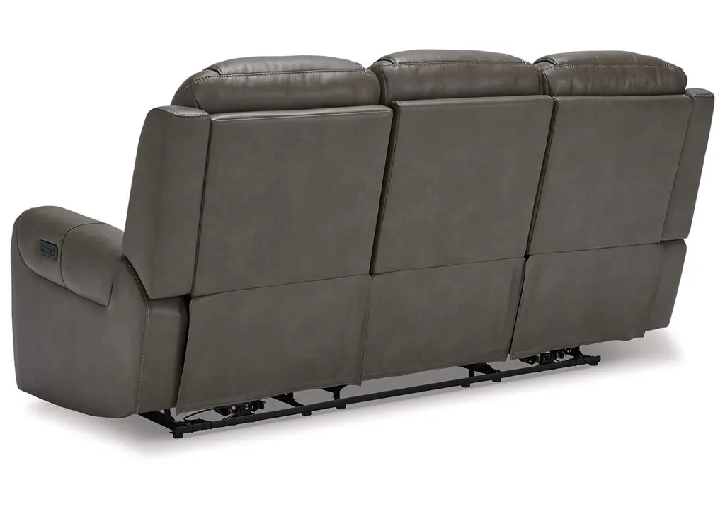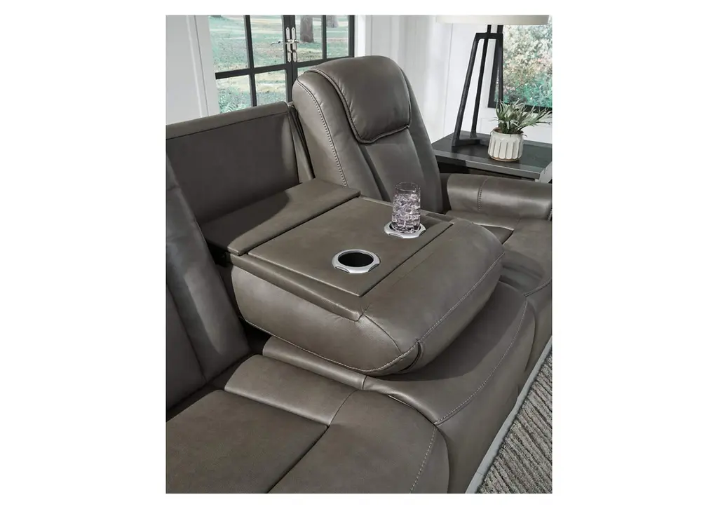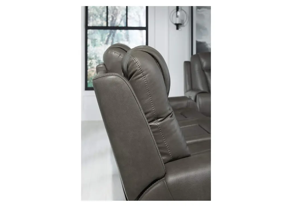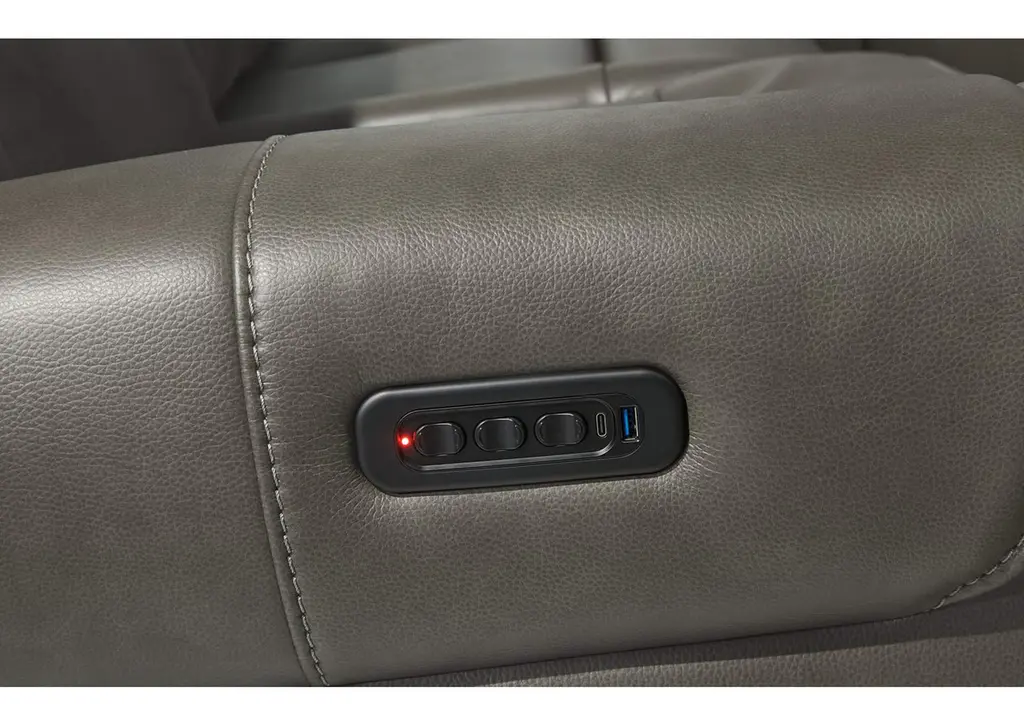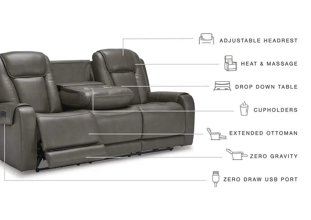 You can bet on turning heads while delivering superior comfort with this power reclining sofa. Its sleek smoke-hued upholstery is an ace when it comes to contemporary style. An extended zero-gravity ottoman ups the ante on at-home relaxation. Topped off with a heated seat and massage function, you’ll be all-in on this recliner.