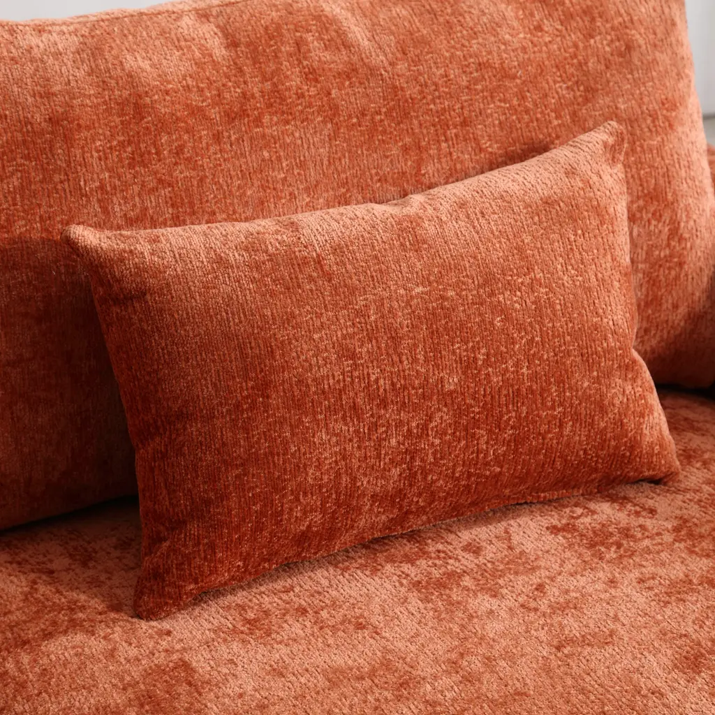 Chenille Loveseat, Upholstered Deep Seat Sofa Tufted Couch With 2 Pillows, Lounge Couch Recliner Sofa Corner Sofa - Orange