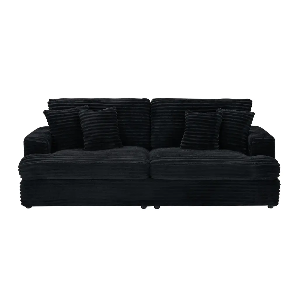 Corduroy Loveseat Sofa With 4 Pillows & Cushions, Upholstered Deep Seat Sofa Wsolid Wood Base Frame Recliner Sofa Couch - Black
