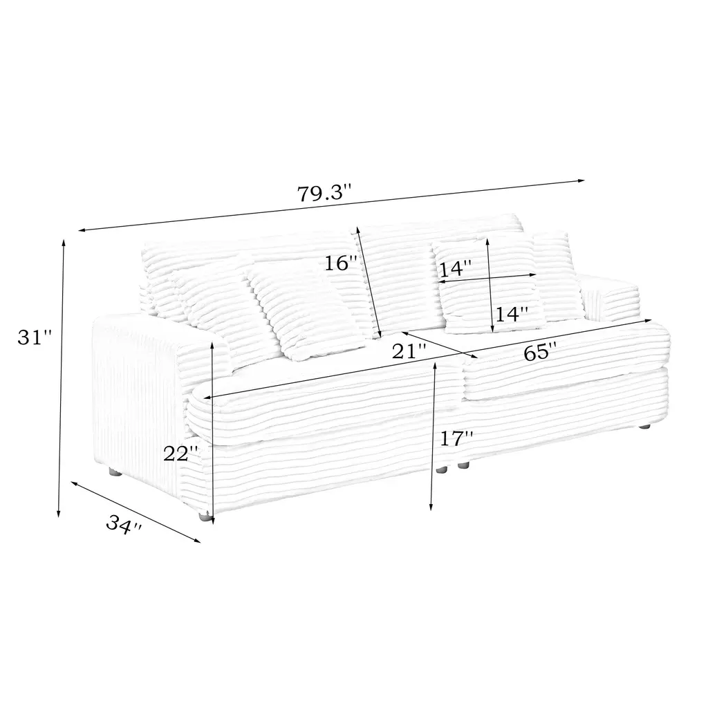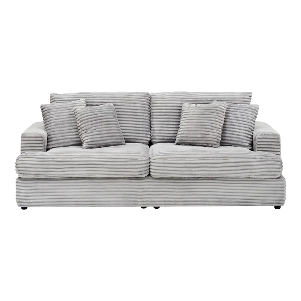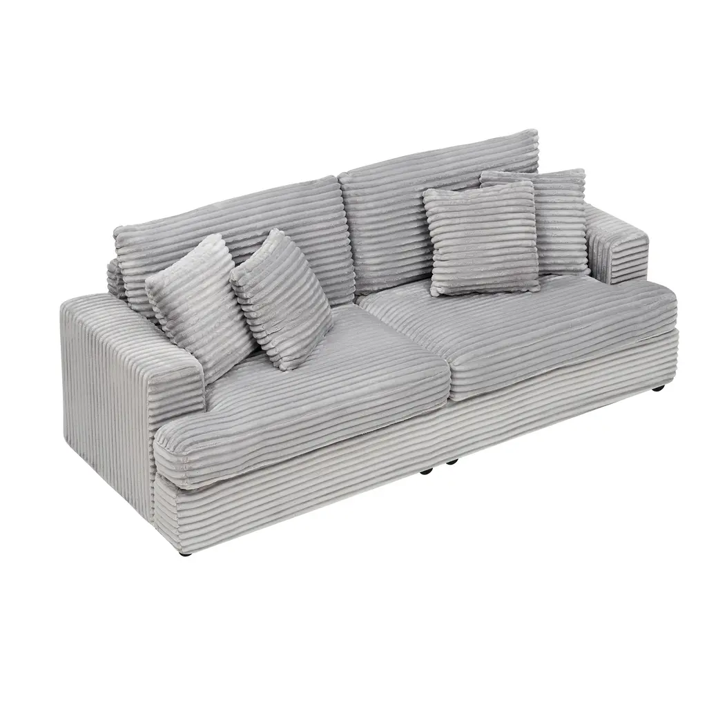 Corduroy Loveseat Sofa With 4 Pillows & Cushions, Upholstered Deep Seat Sofa Wsolid Wood Base Frame Recliner Sofa Couch - Gray