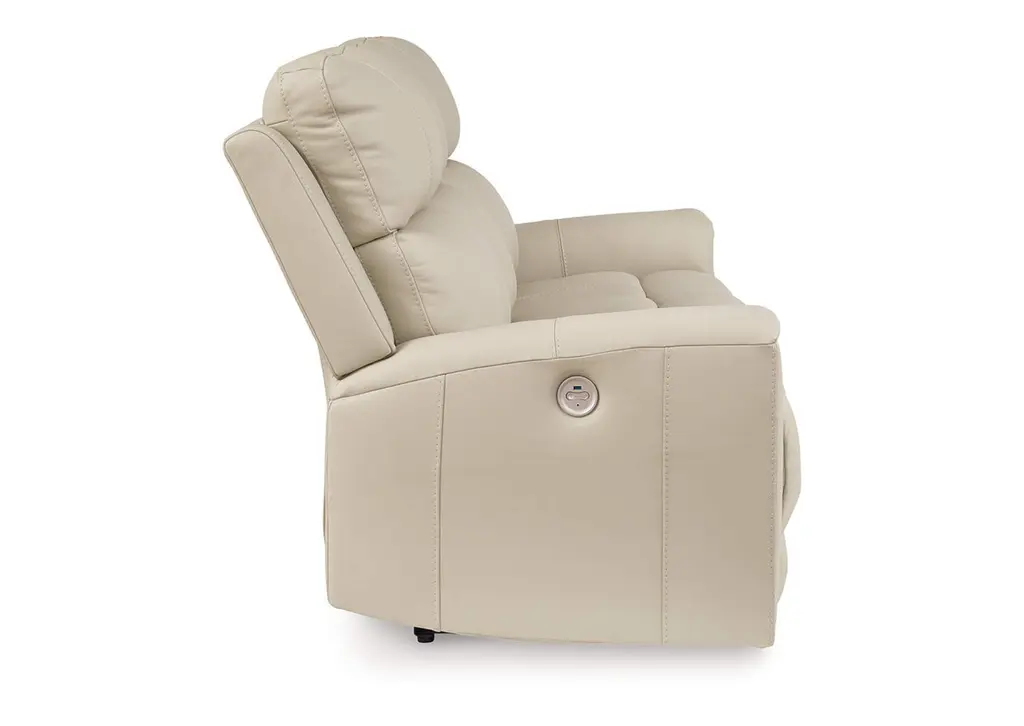 Focus on function. The practical Dahlmoore power reclining sofa balances contemporary character and irresistible comfort. Its affordable, expertly matched leather and faux leather upholstery keeps your style up to speed without breaking the bank. Reclining at the touch of a button, this sofa plays well in relaxed, luxe seating areas made for quality time. Weight 309.000 lbs. (139.05kgs.)