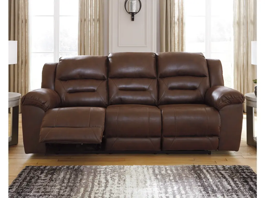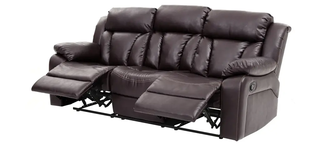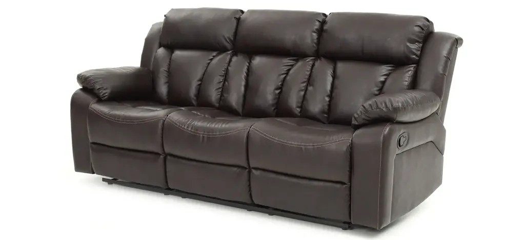 Relax all day in this sofa with channel tuft design back . Covered in long lasting Faux Leather, this sofa features padded arms, strong stitched seams and an easy to use reclining mechanism that is activated with an easy to pull handle.