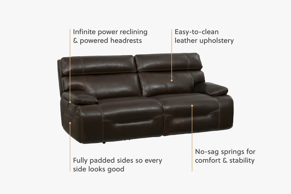 Our Denver power reclining sofa is a sophisticated take on modern relaxation. The depth and comfort of top-grain leather is complemented by independently powered headrests, infinite reclining positions and a classic Lawson silhouette.